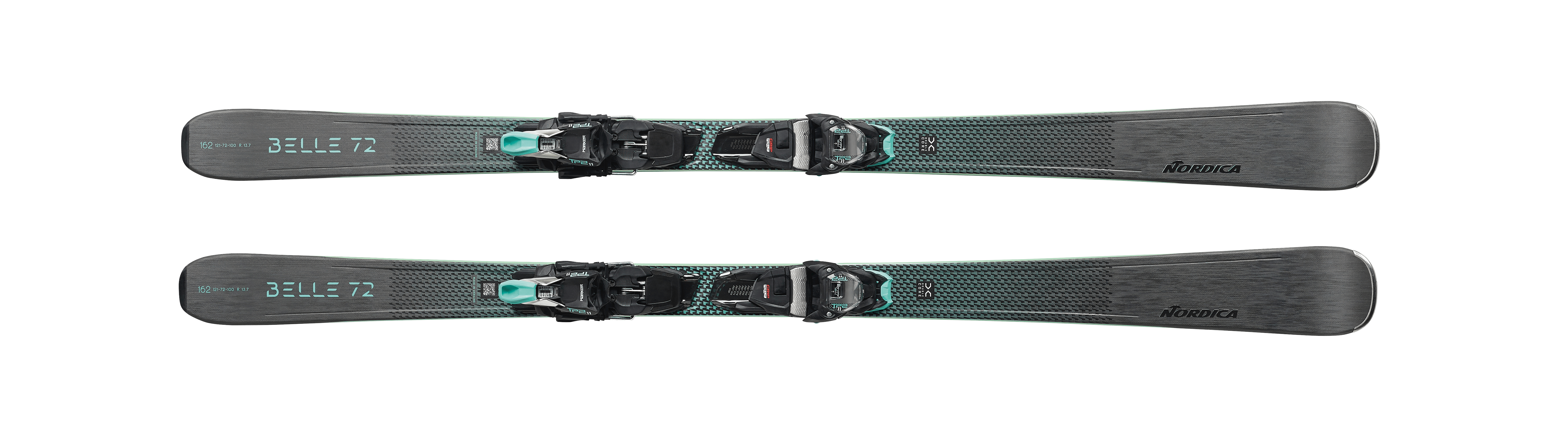 Whether you’re lapping groomers with friends or simply enjoying some solitude, Nordica’s Belle DC 72 keeps you smiling. Especially playful and fun, it’s tailored to the needs of intermediate and advanced skiers. Nordica’s new Double Core technology embeds a shock-absorbing Pulse core between two wood cores to create a calm yet powerful ride that amplifies confidence. A shorter binding plate boosts your ability to flex the ski and initiate turns. And by lowering the position of the rear plate, Nordica’s Natural Stance technology provides a more natural, centered position that maximizes control. Take charge of the trails with Nordica’s Belle DC 72.