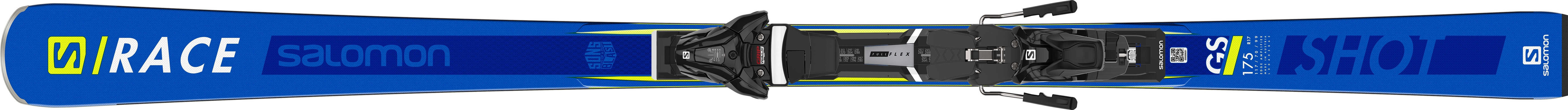The Salomon S/Race Shot GS's full retail price is €759.99. The Ski is roughly €80 cheaper than the average price of all Race Inspired Skis, making it a mid-range model. This ski is just right for good skiers. Stable but not overpowering. This stiff-tailed ski is designed for perfect grip on-piste. It is best not to leave the groomed runs with this ski. The ski is available from 170 to 175cm. The ski is very agile and performs well in all sizes of turn radius - both long and short. The radius ranges from 16 m to 17 m (depending on the length of the ski).
