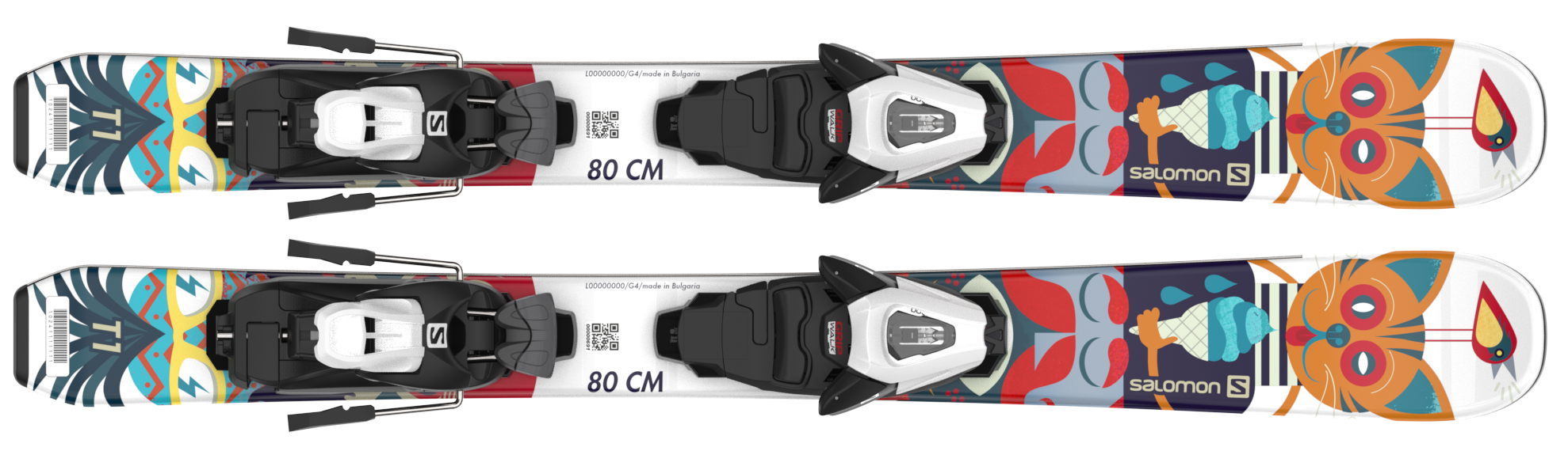 The T1 Jr XS is the ideal first pair of skis for young skiers learning how to do their first turns. The cheery design makes the ski appealing even to the youngest skiers while the lightweight construction helps them keep their energy up longer.