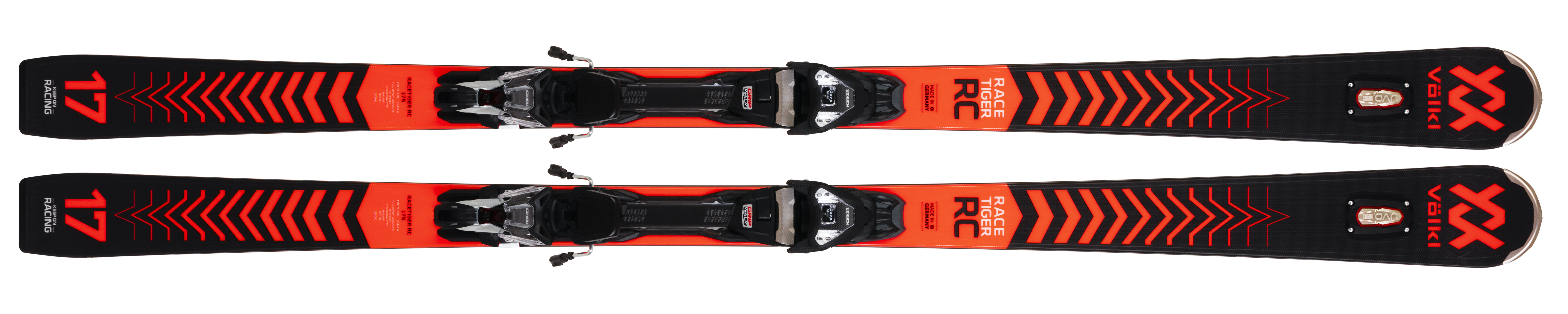 The Racetiger RC with tip rocker allows super-sporty long turns with lots of riding comfort. This fantastic combination is made possible by the integration of the UVO 3D, 3D.Glass, Powered by Steel and sidecuts with carefully aligned flex and tip geometries.