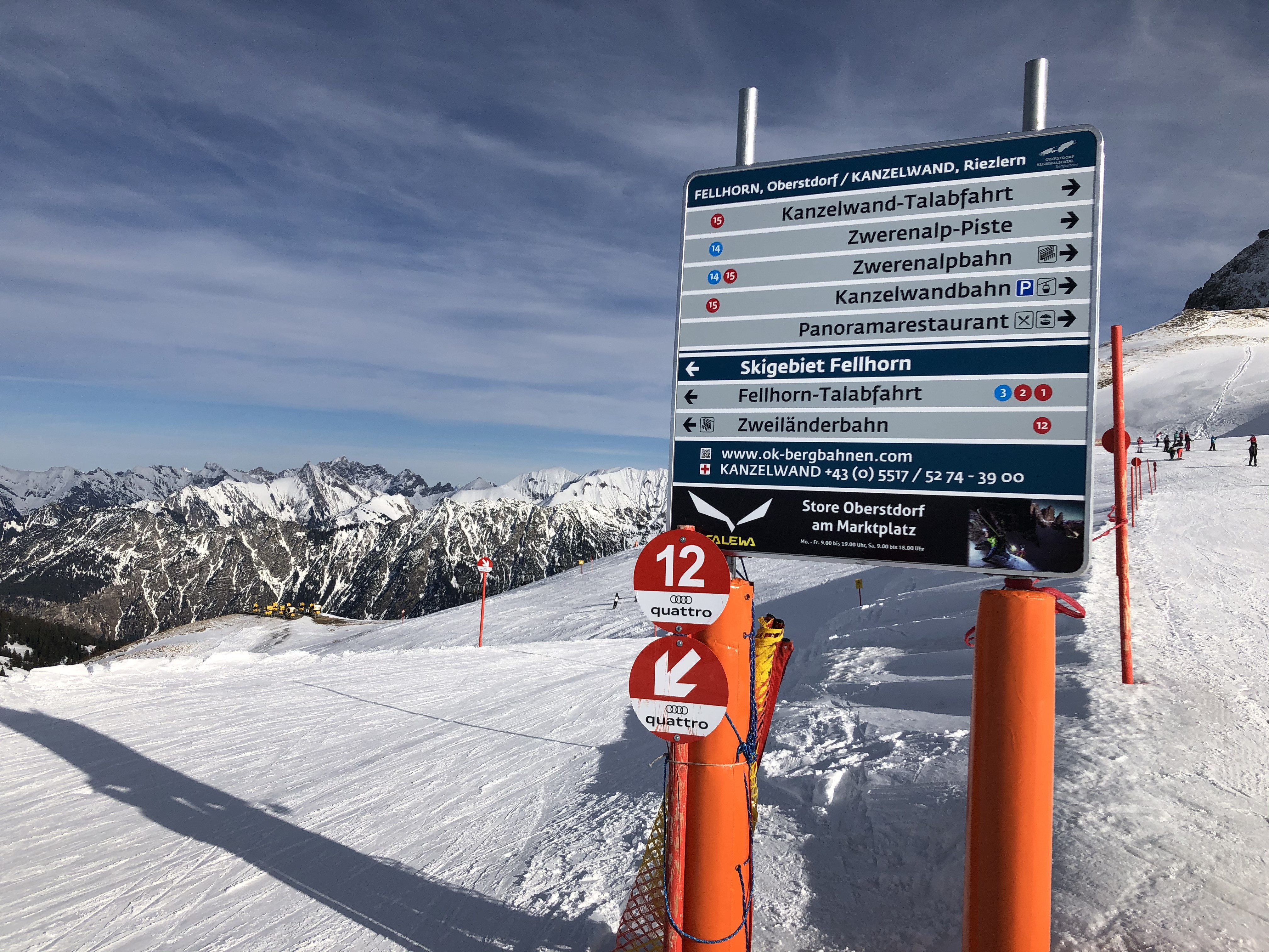 The Bavarian Oberstdorf and the Austrian Kleinwalsertal share the slopes at the Fellhorn and Kanzelwand ski mountains. The Kleinwalsertal can only be reached by car via Germany, so the two destinations are closely connected even outside of skiing. Beginners start their skiing holiday best in Riezlern on the Austrian side, because there is a nice practice area in the valley. Experienced skiers, on the other hand, can let off steam on the many red marked slopes throughout the entire ski area.
