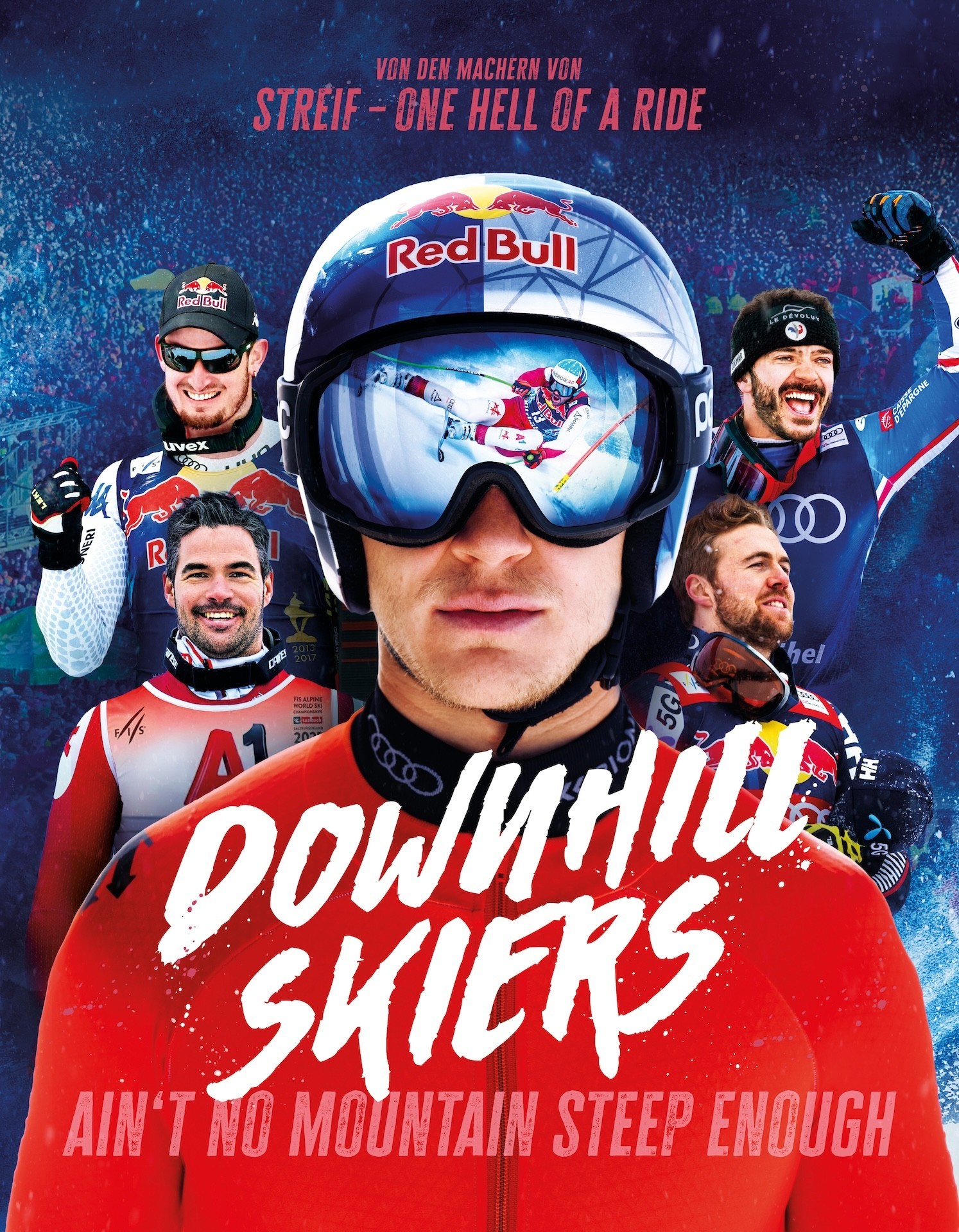 Ten years after the cinema success “Streif – One Hell of a Ride” about the legendary Kitzbühel downhill race, director Gerald Salmina and screenwriter Tom Dauer return to the big screen. Their new film “Downhill Skiers – Ain’t No Mountain Steep Enough” showcases the world of the Alpine Ski World Cup in all its facets, from the nerve-racking start to the cheers at the finish line.