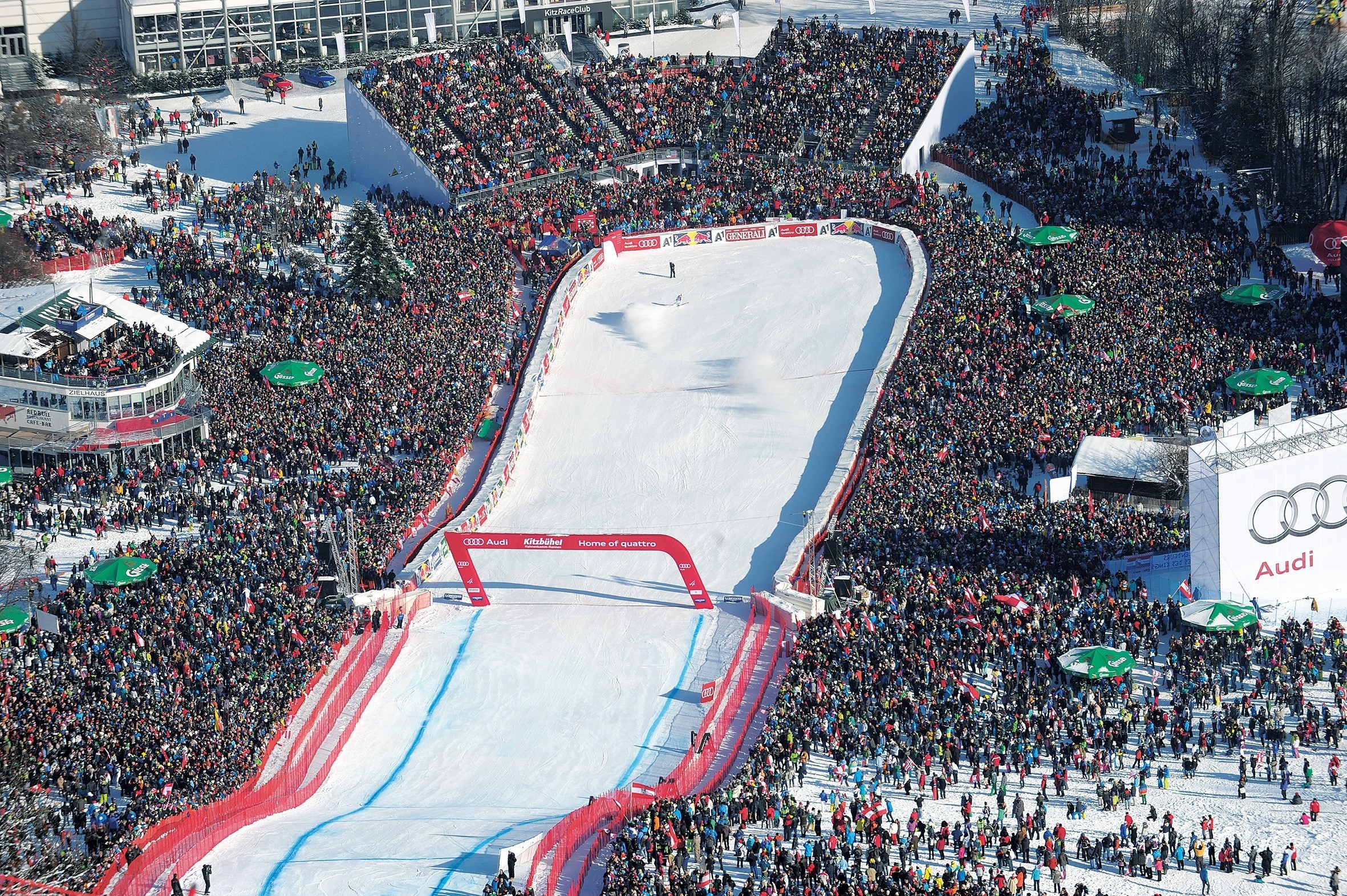 With up to 80,000 spectators over three days, the Kitzbühel races are absolute crowd favorites in the Ski World Cup. Many celebrities such as Arnold Schwarzenegger do not miss out on this highlight. The supporting program with numerous wild parties in the Tyrolean ski resort is almost as legendary as the races.