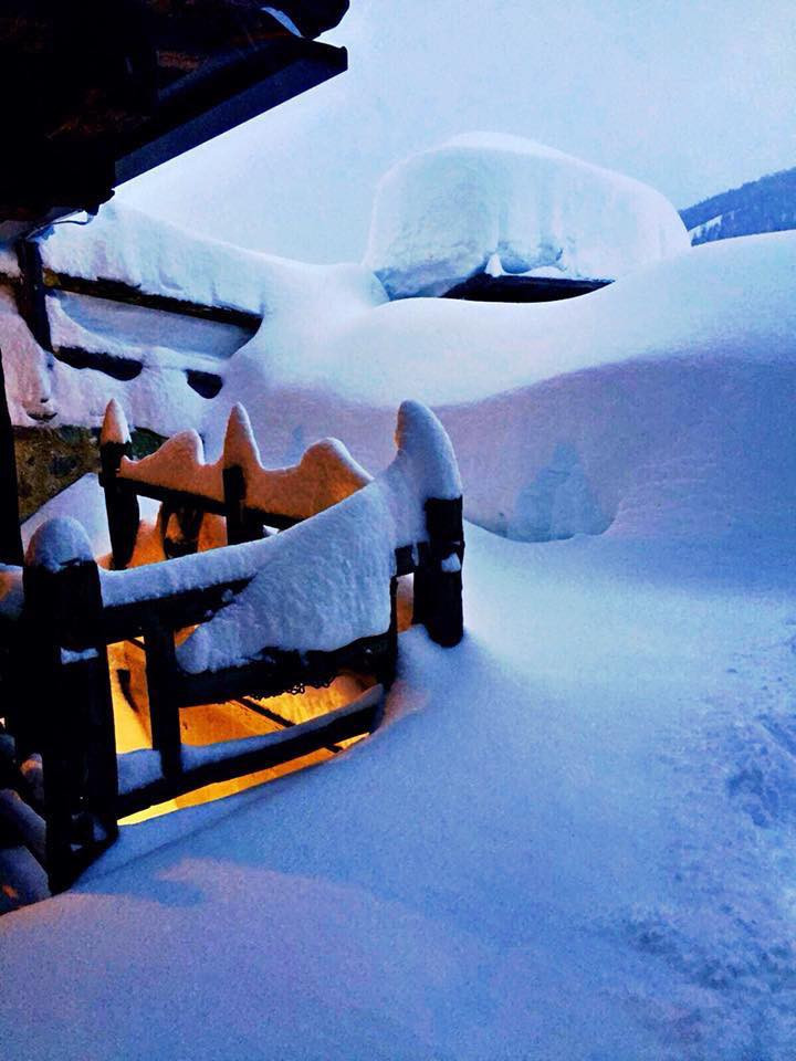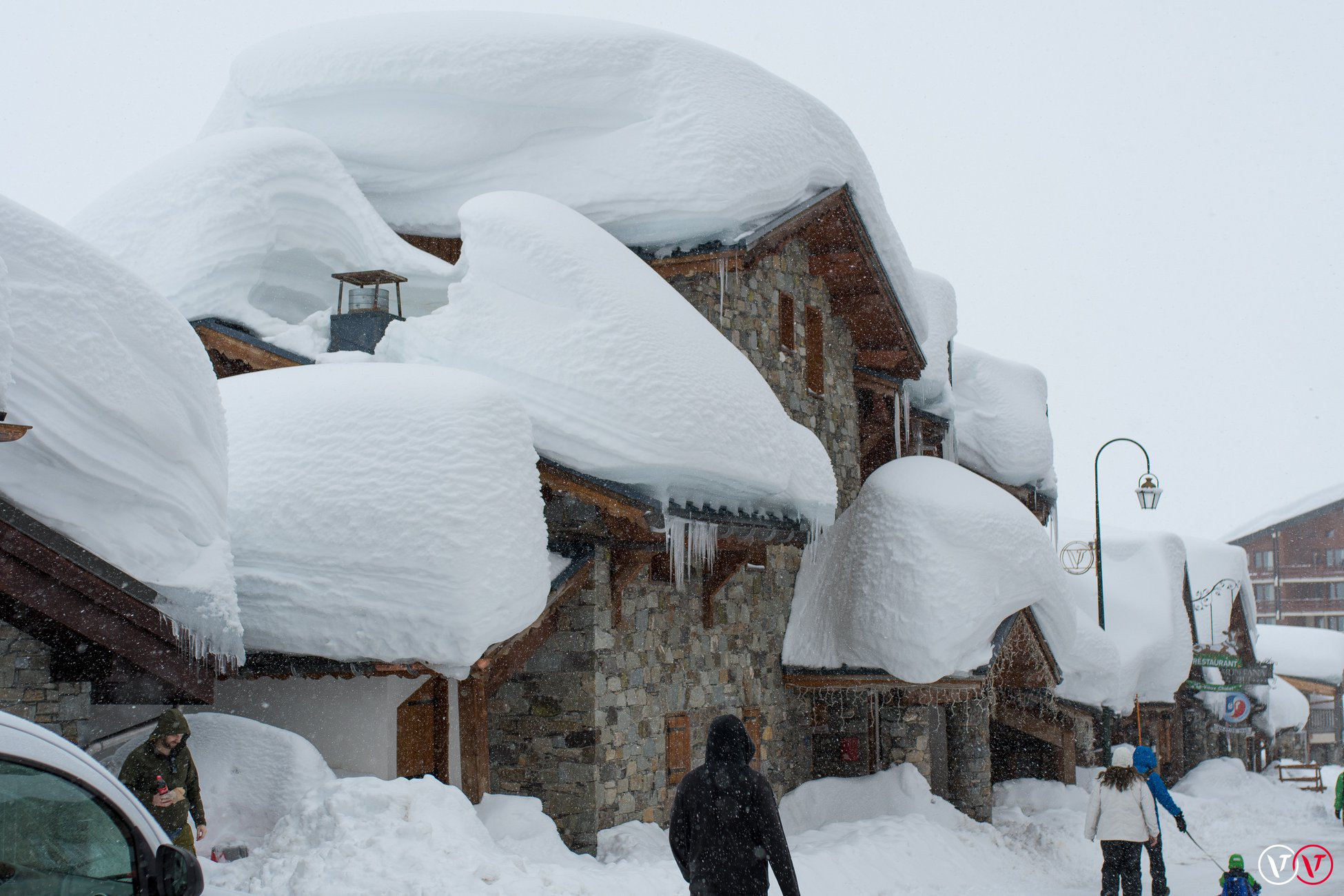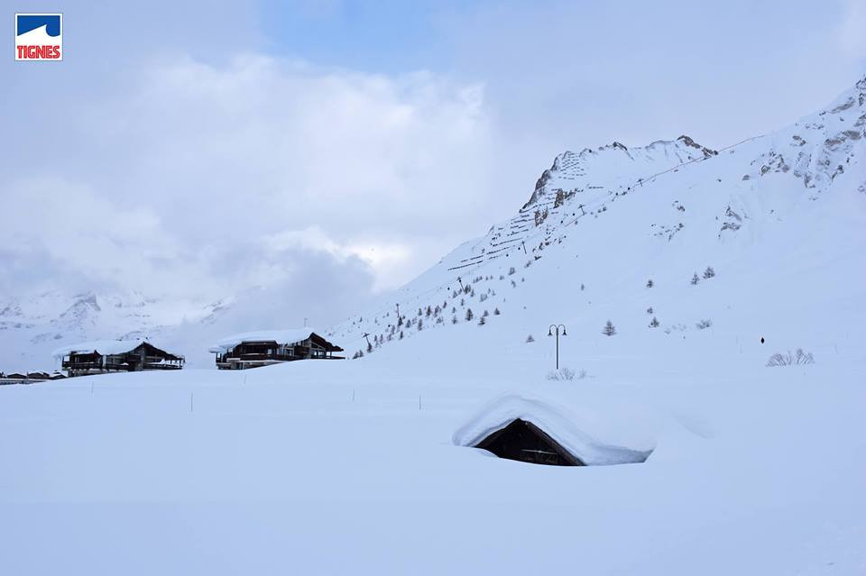 A whopping 300cm of snow covers major ski resorts of the French and Swiss Alps. Nearly completely hidden under the snow is Bonneval sur Arc in France.