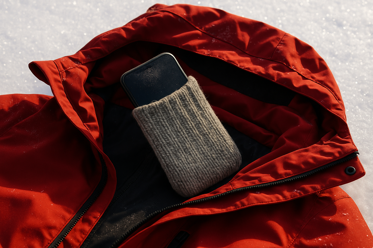 For extra protection, one surprisingly popular method has caught on: wrapping your phone in a wool sock. Wool is naturally great at retaining heat. Its fibers trap air and create insulation without causing moisture buildup. That helps keep your phone warm, even if you take a fall or snow gets inside your jacket. Tip: Make sure the sock isn’t too tight. You should still be able to pull your phone out easily.