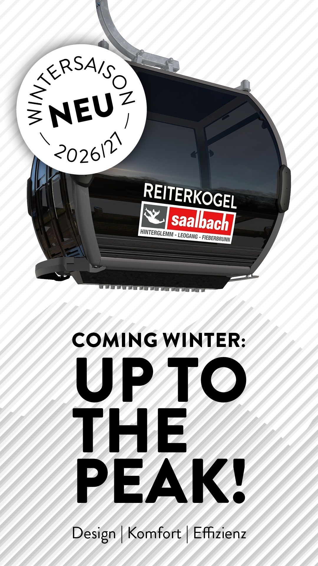 The ride takes under nine minutes, ensuring fast and efficient access to the Reiterkogel. Modern gondola cabins with a contemporary design and improved spaciousness will make for a noticeably more comfortable journey.