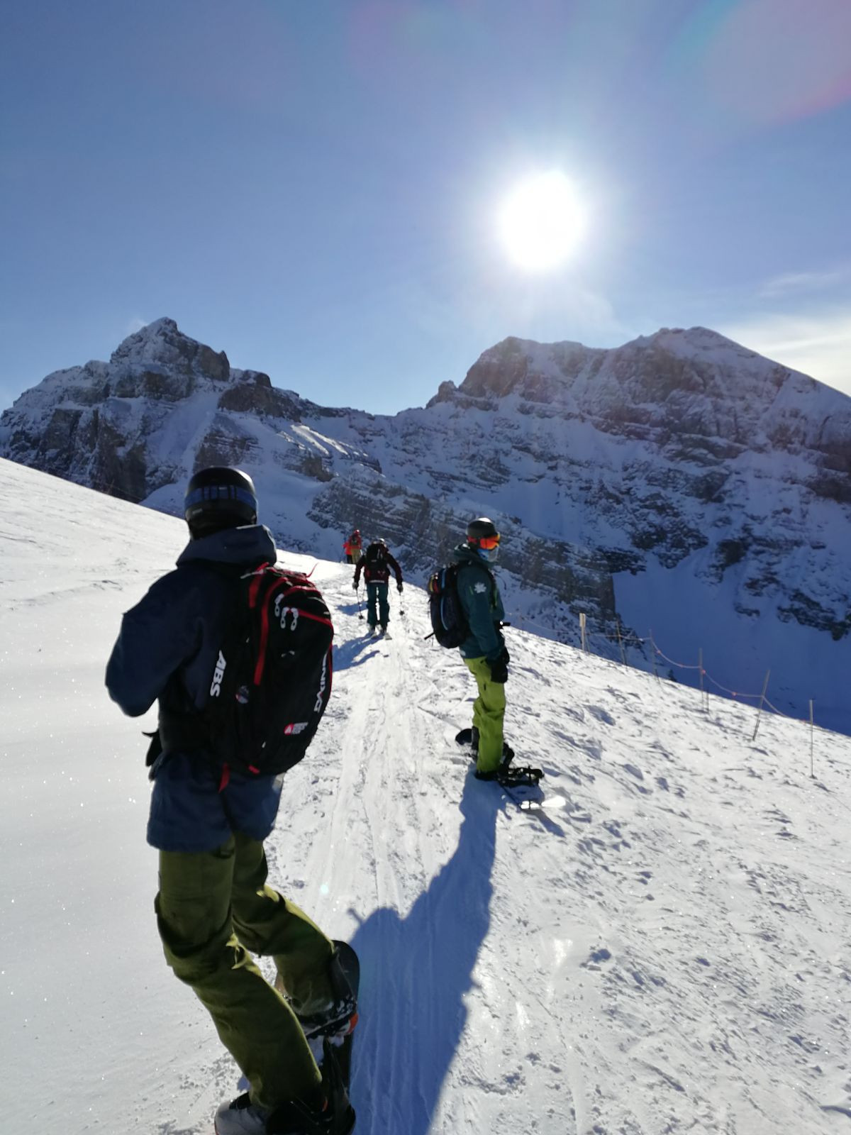 Day 1 started with a big highlight: skiing at Lake Louise, famous venue of the FIS Alpine Ski World Cup. The sun shining brightly, we ventured onto Canadian snow for the first time. After a warm-up at the World Cup run, we went on to the legendary Black Bowls. Were it moguls or tree runs, the guides always found suitable runs for our respective skill level. The only thing missing that day was Champagne Powder. Hence, we had enough time to use the moguls to prepare for the powder runs that were yet to come. Some of us took their very first steps on ungroomed slopes that day – no problem, as the guides were always there to help.