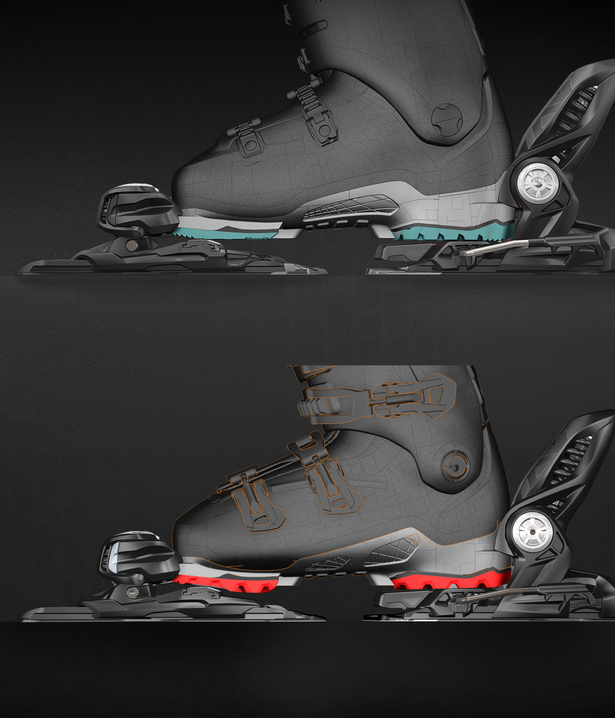 There are no impairments to skiing performance and safety with the new sole and binding system either. Special gliding strips at the sole guarantee a safe and standard release from the binding. The strips are placed inside of a notch, protecting them from wear and tear as you walk on gravel or asphalt. Furthermore, changeable sole pads at the toe and heel areas help achieve ideal power transmission and precise release.