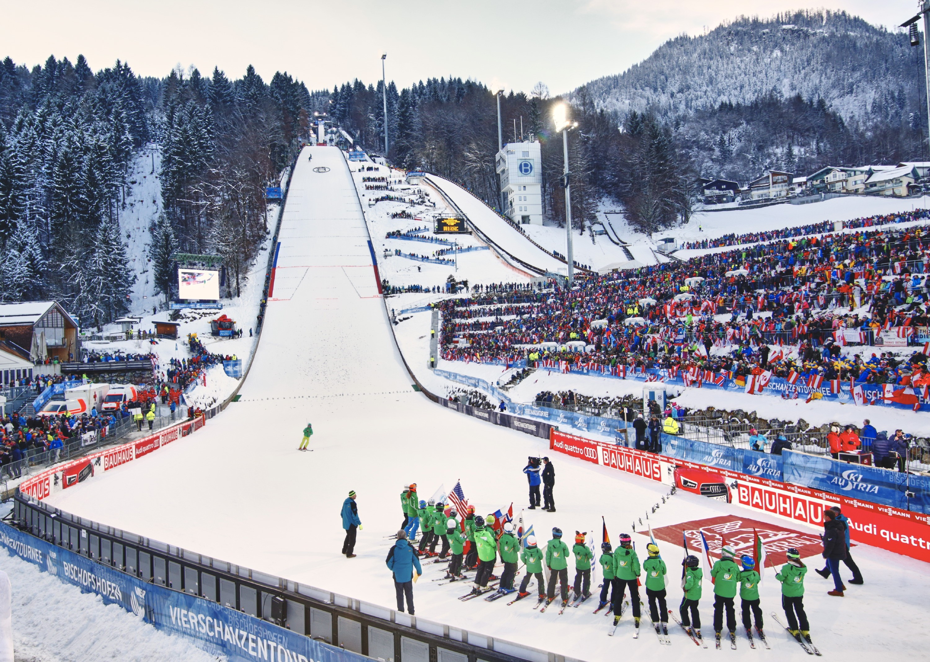 Better known as "B'hofen" with ski jumping insiders, the so-called Dreikönigsspringen takes place here every year on 6 January. The discharge ramp is the Paul-Außerleitner Jumping Hill of SC Bischofshofen. With a hill size of 142 metres and a K-point of 125 metres, it is the largest facility of the entire Four Hills Tournament. The stadium has a capacity of 26,000 spectators. Pole Dawid Kubacki set a new ski jump record on 6 January 2019 when he soared to 145 metres.