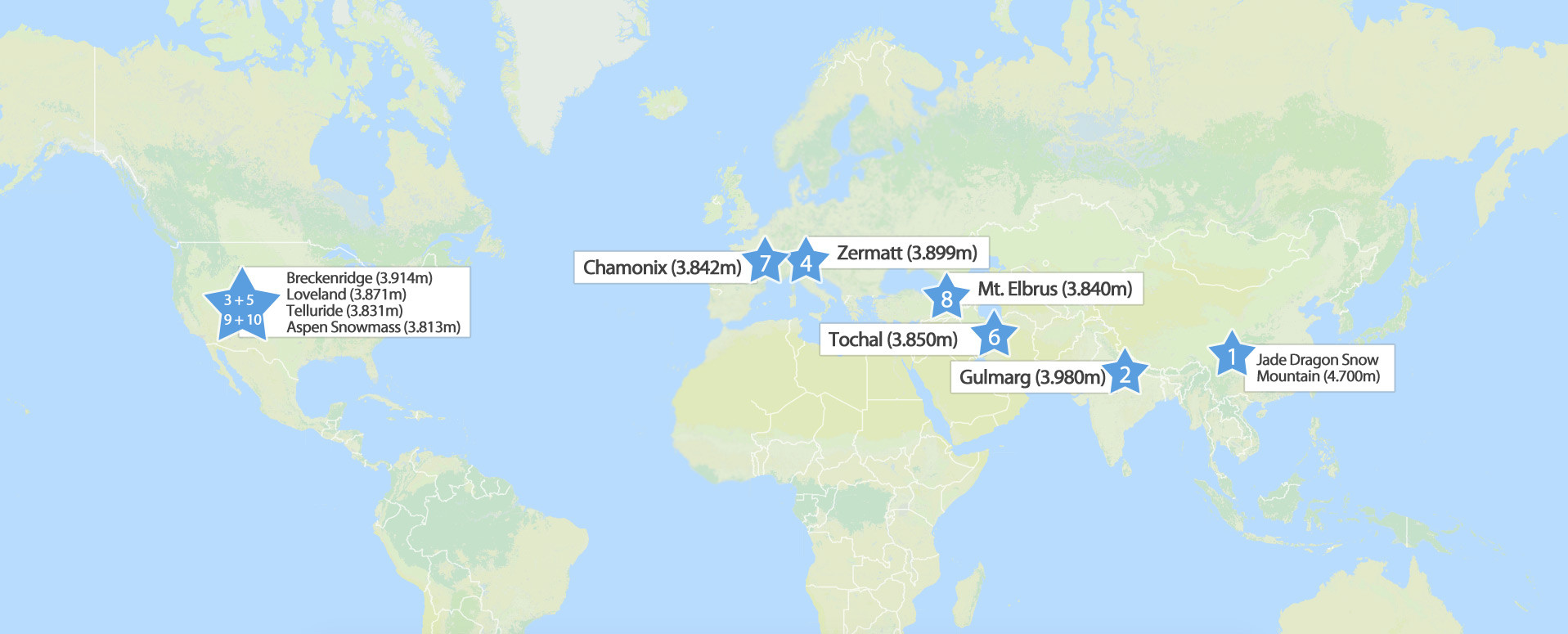 | 3. | Breckenridge | USA | 3,914 m |