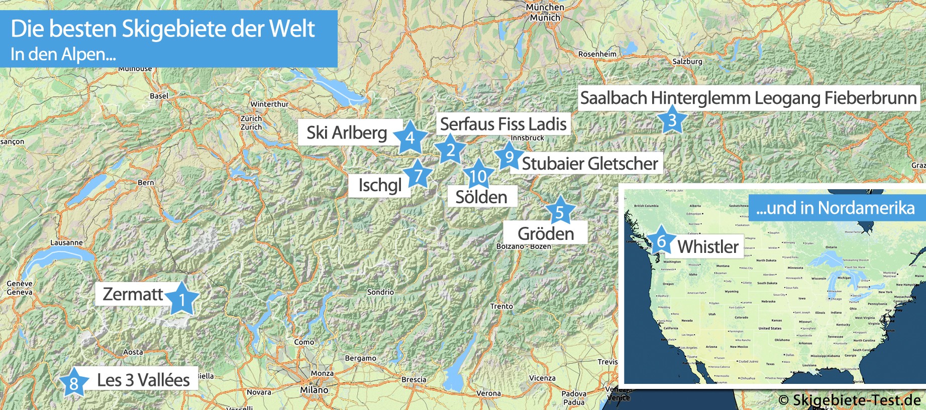 Since 2004, the Snow-Online.com team has been visiting ski regions around the globe and testing them according to set criteria. Initially, the ski areas were examined based on six categories. In 2015, the criteria were expanded to include the ten categories “Beginners”, “Advanced skiers”, “Freeride”, “Freestyle”, “Families”, “Après-ski”, “Service”, “Snow reliability”, “Value for money” and “On-mountain dining”. Ski areas can receive up to 10 points in each category, and therefore a maximum of 100 points overall. The final result is the total of all individual categories added together. Snow-Online.com has tested over 250 ski areas worldwide to date.