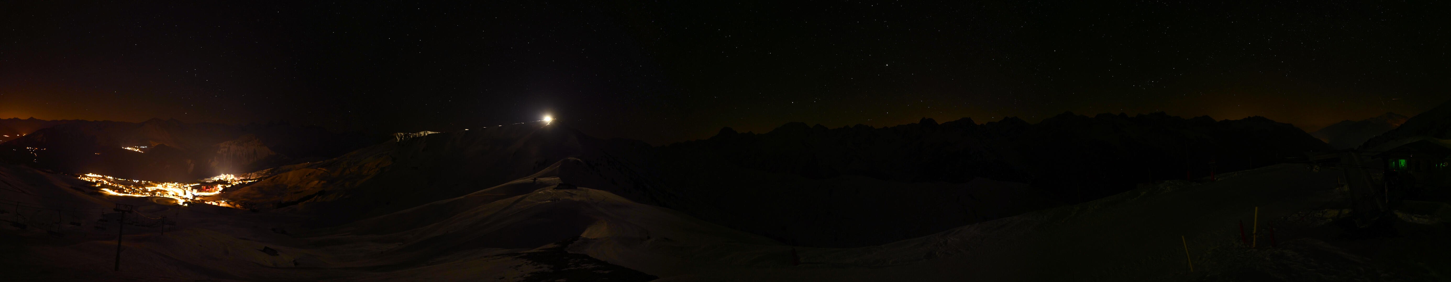 This webcam is located at top station of chairlift Chaput in french ski resort Les Sybelles. One can spot the village La Toussuire in regionAuvergne-Rhône-Alpes.