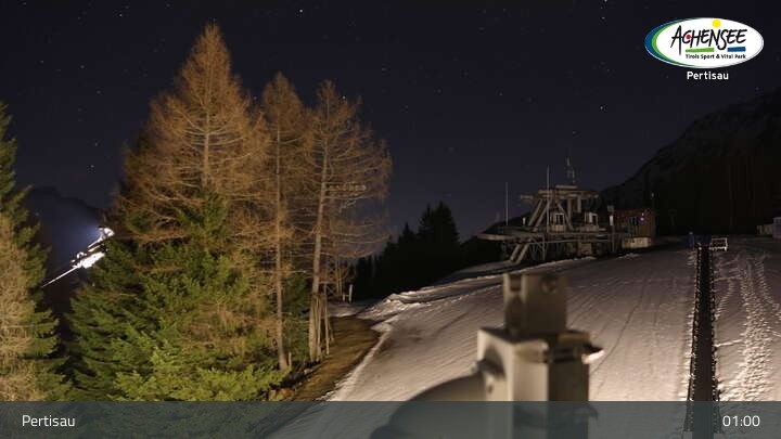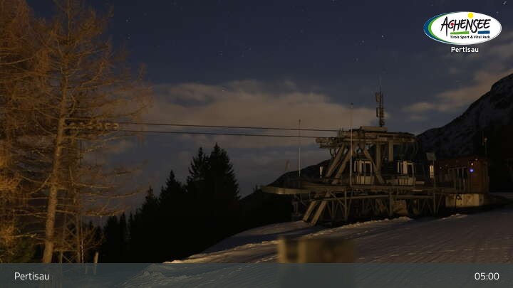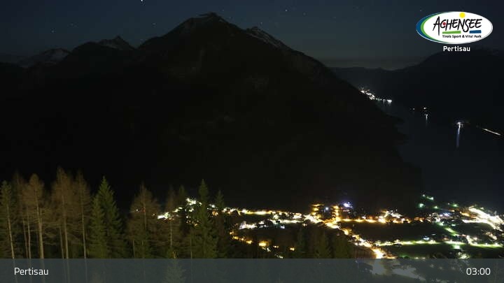 Archived webcam image showing Panoramic View of Lake Achensee and Pertisau on 8 Apr 2026 at 01:49 00:00