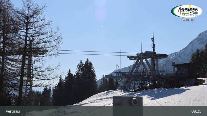 Archived webcam image showing Panoramic View of Lake Achensee and Pertisau on 8 Apr 2026 at 09:49 08:00