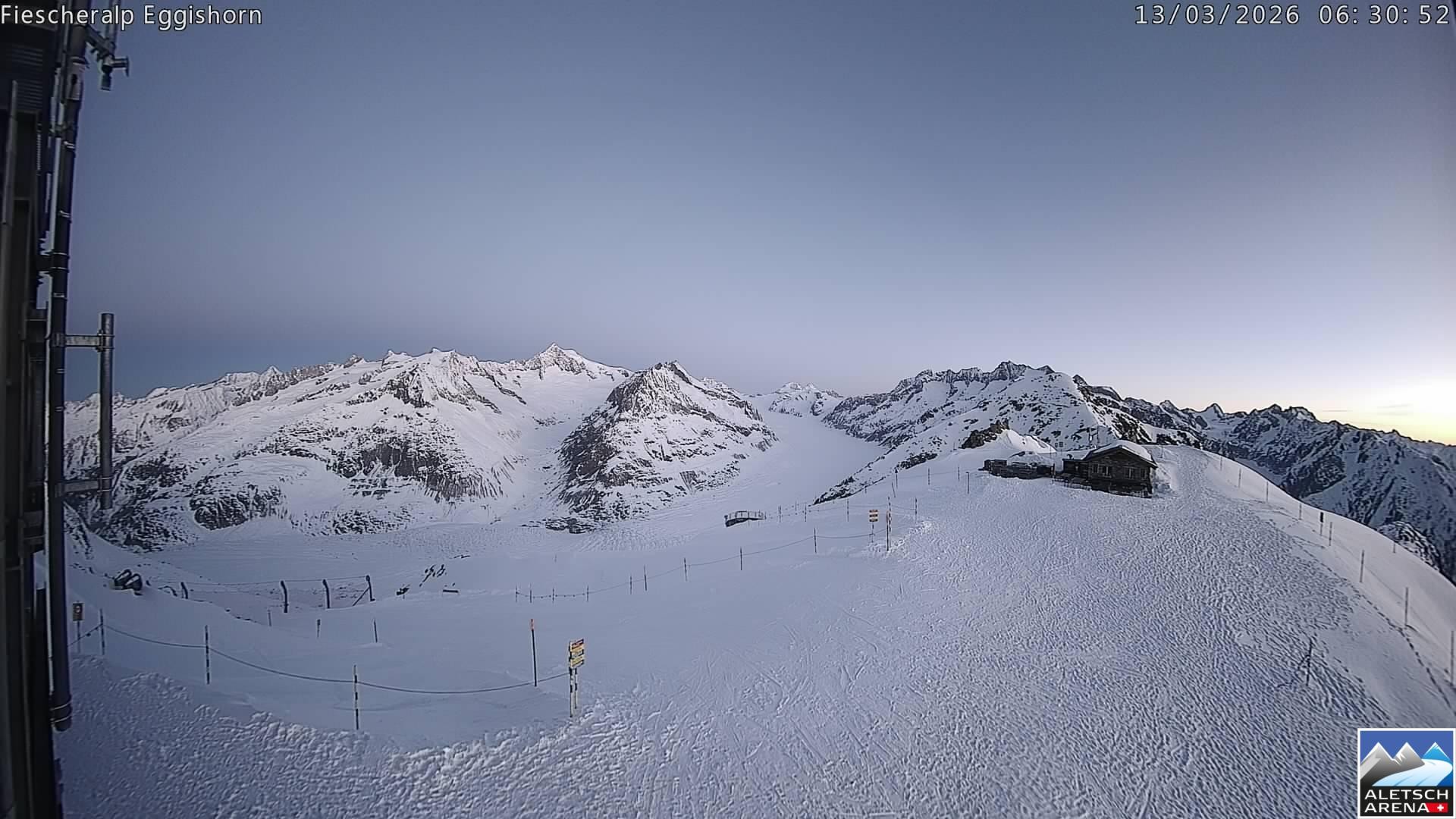 Archived webcam image showing Aletsch Arena - Viewpoint Eggishorn on 13 Mar 2026 at 06:47 05:00