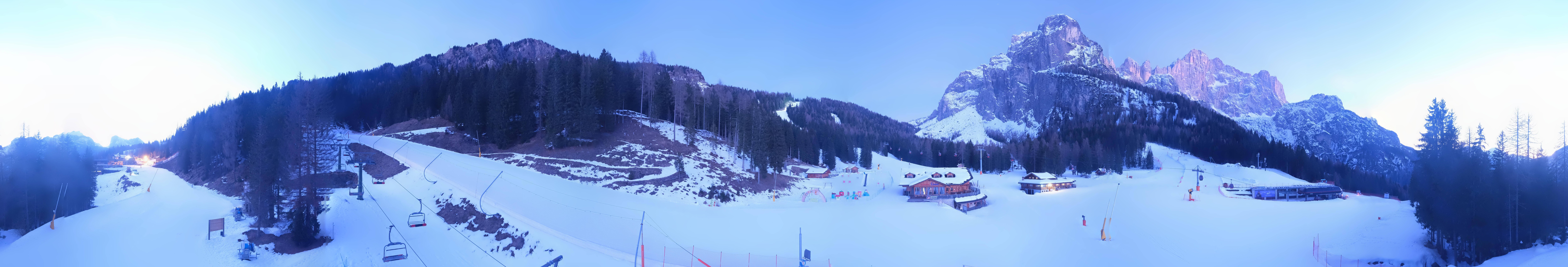 The webcam is located at Civetta ski resort in Alleghe. It shows images of the Piani di Pezze, the entrance to the resort.