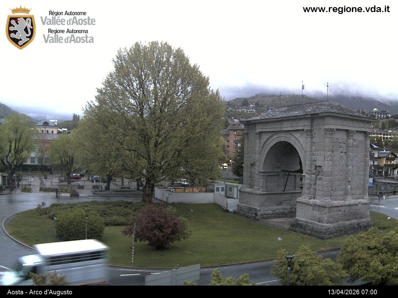 Archived webcam image showing Arco d'Augusto, Aosta on 13 Apr 2026 at 07:20 Latest