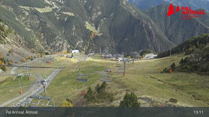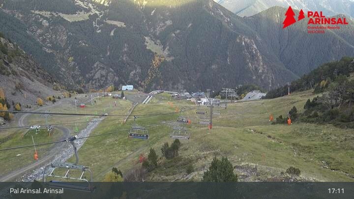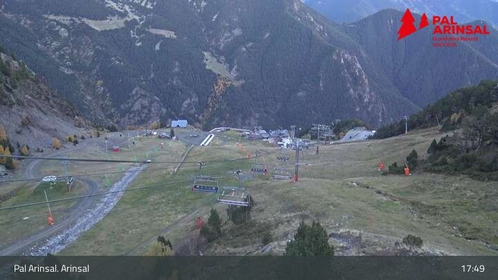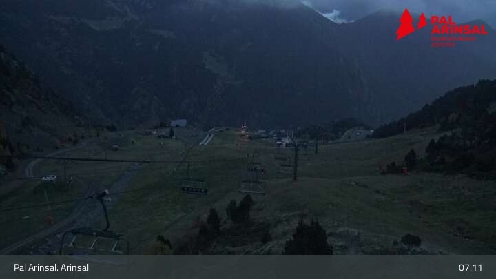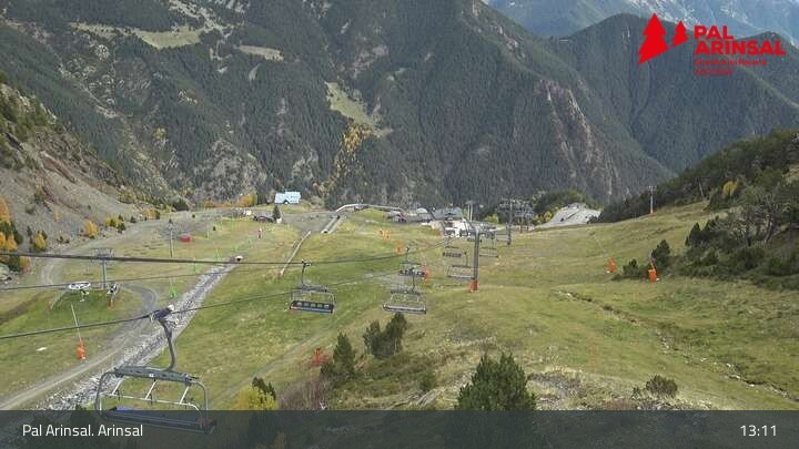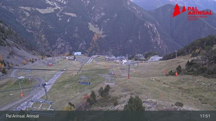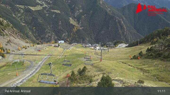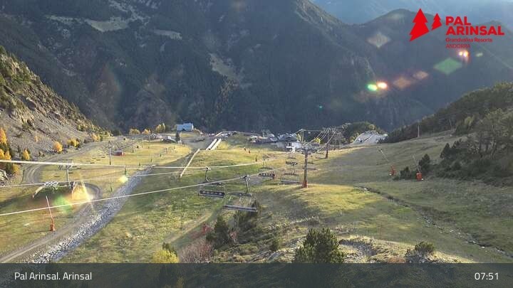 A good overview of the "Sector Arinsal" in the ski area Vallnord (Andorra) provides this webcam. In the foreground one can spot the 6-seater chairlift Les Fonts and the T-bar lift Els Planells. In the background one can see the chairlift La Tossa and the slopes Por Vell and Les Fonts.