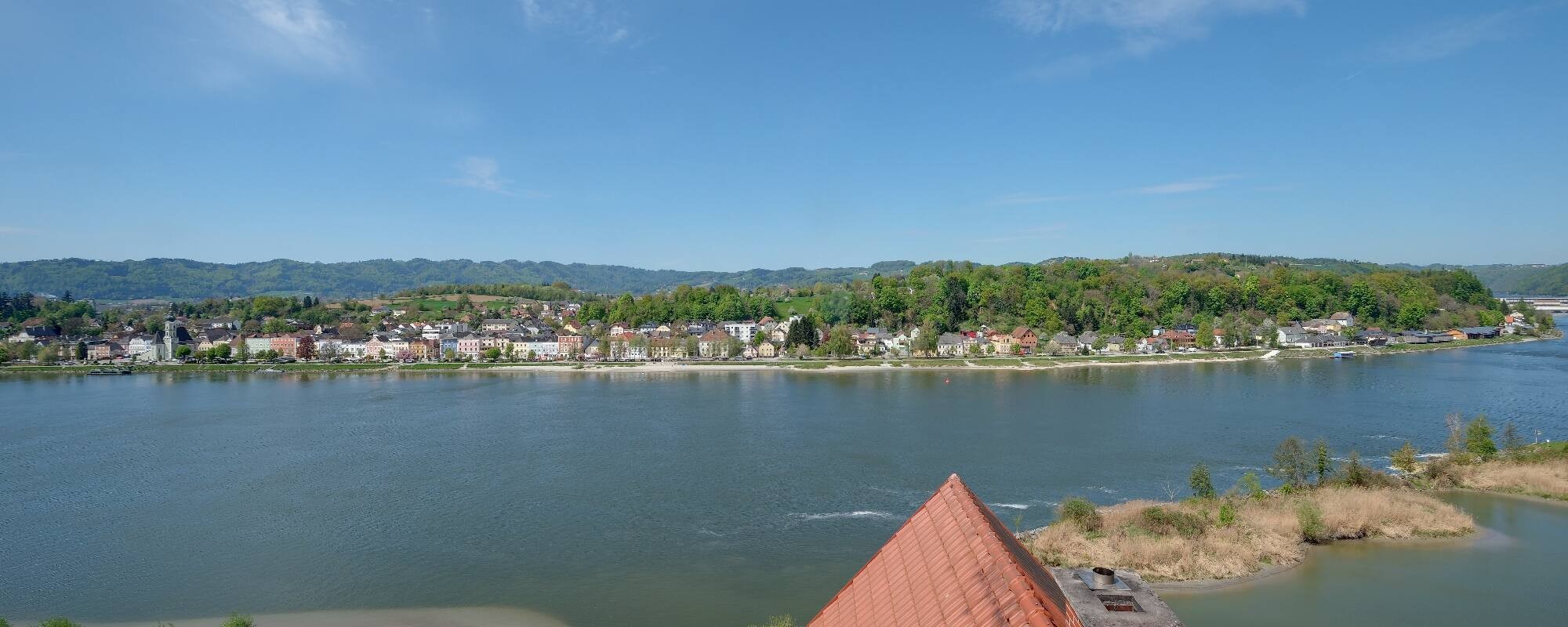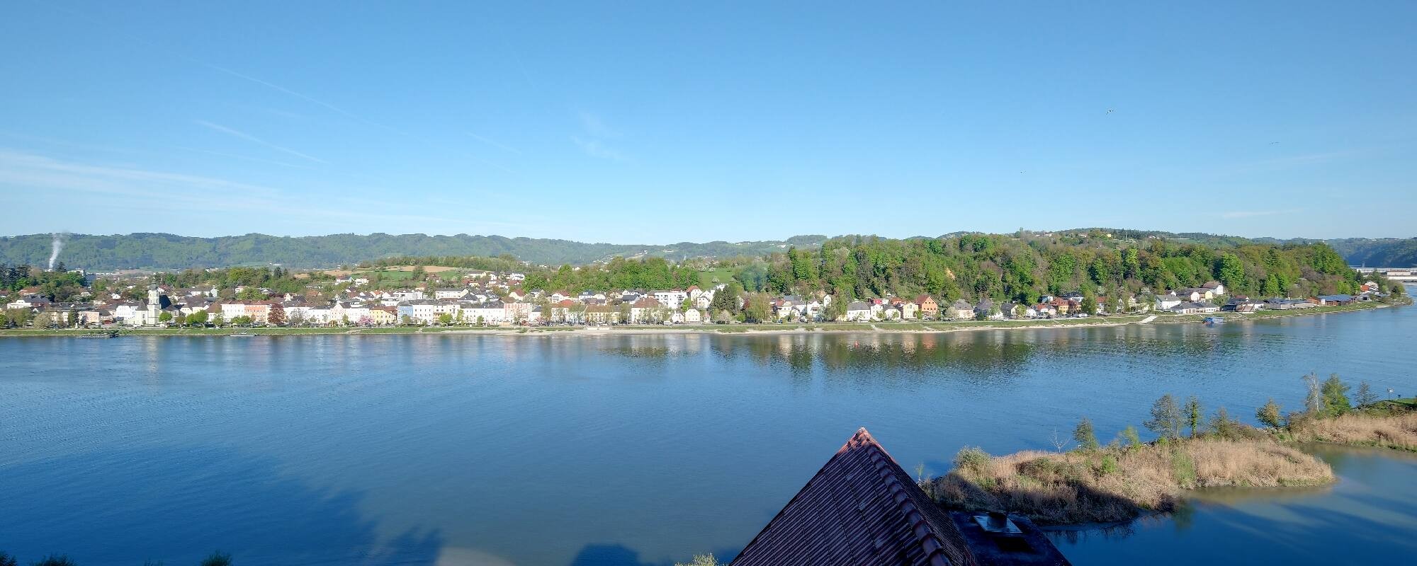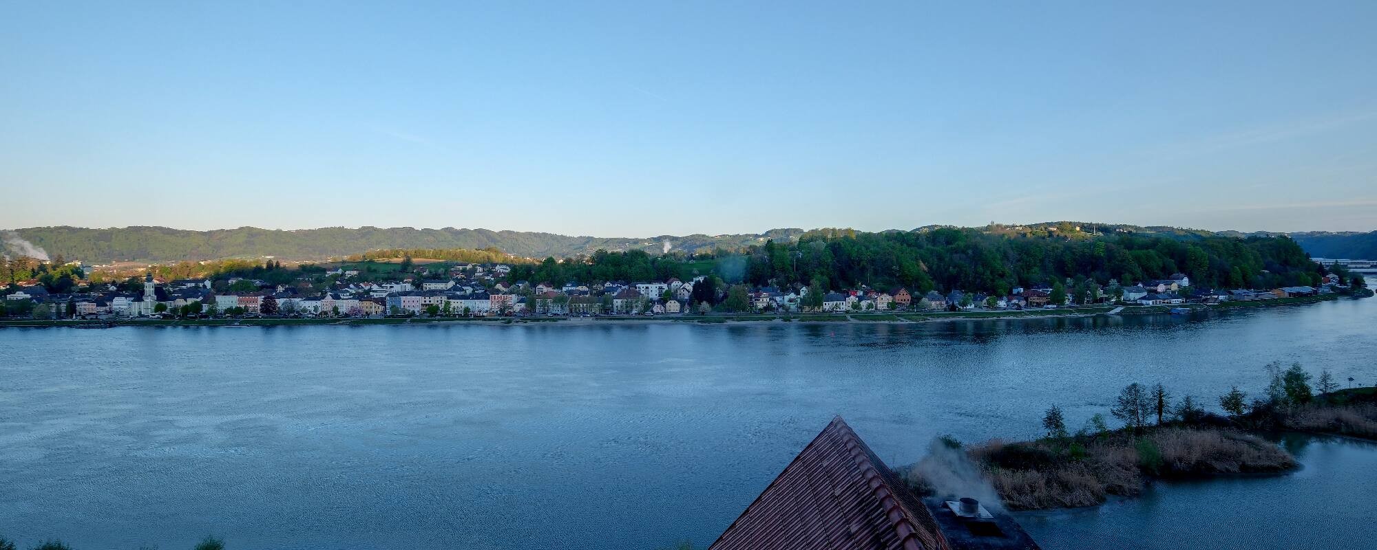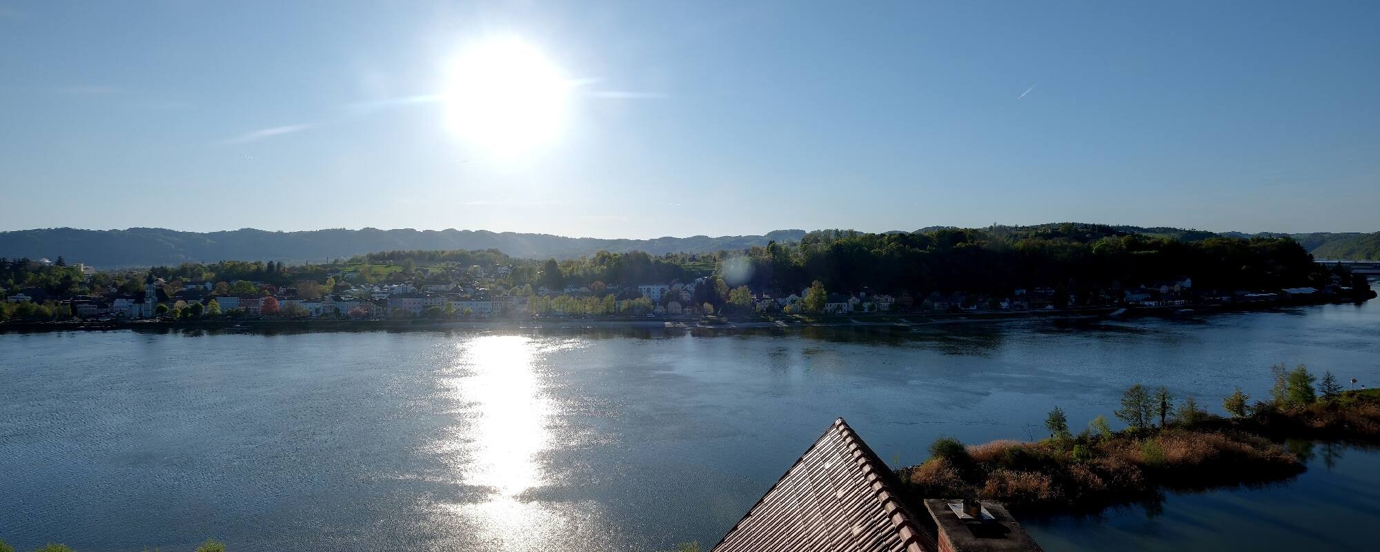The panorama camera is located at the Hotel-Restaurant Faustschlössl near Feldkirchen and looks over the Danube to Aschach.