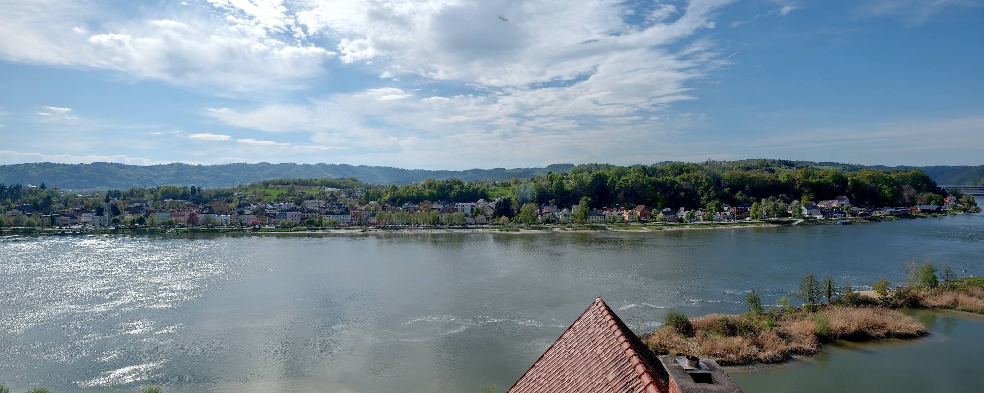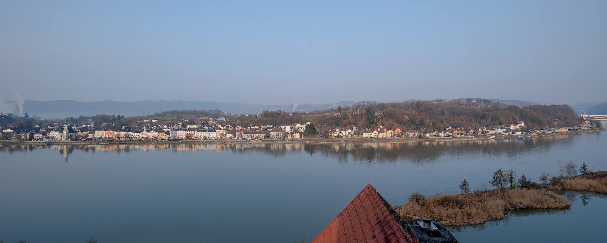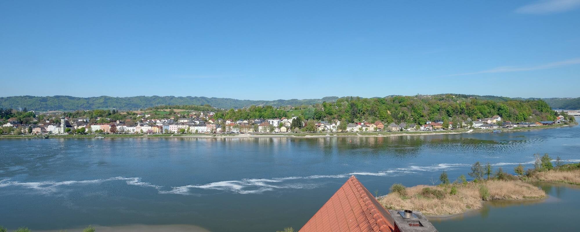The panorama camera is located at the Hotel-Restaurant Faustschlössl near Feldkirchen and looks over the Danube to Aschach.