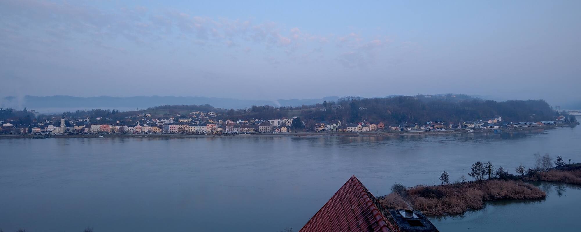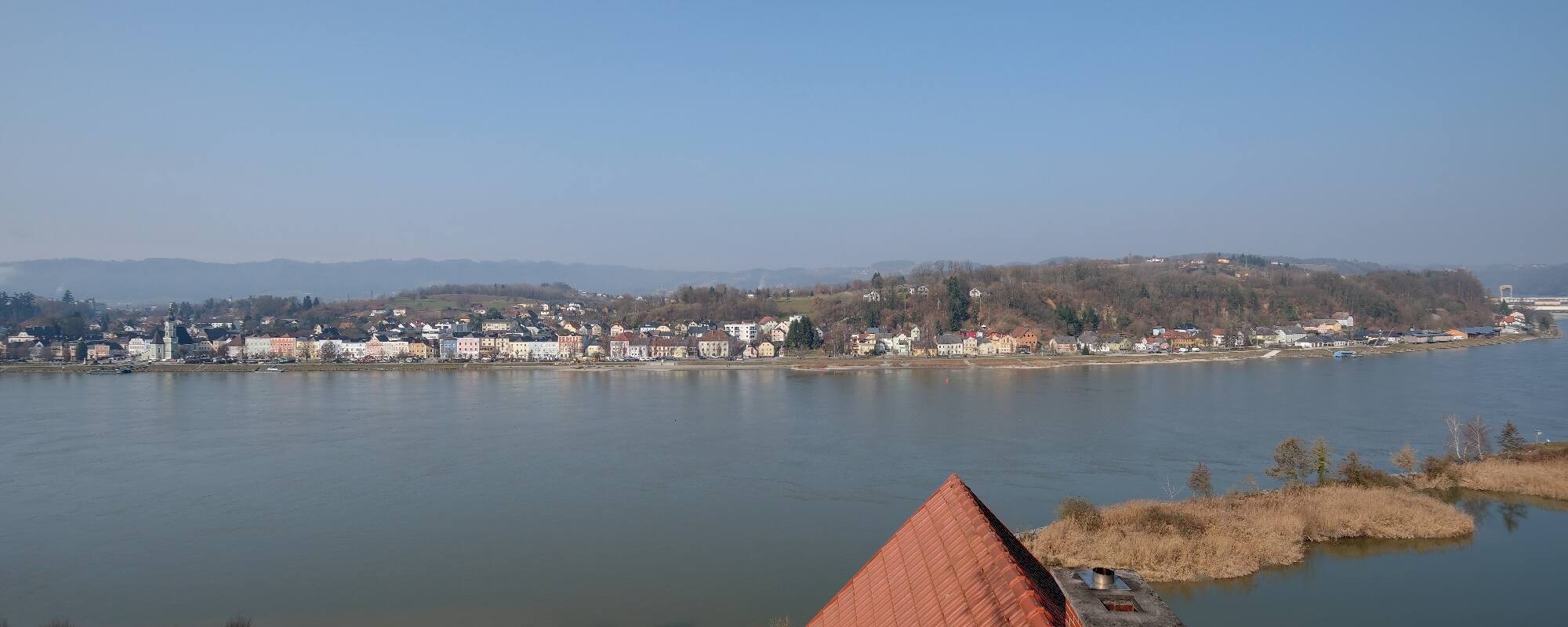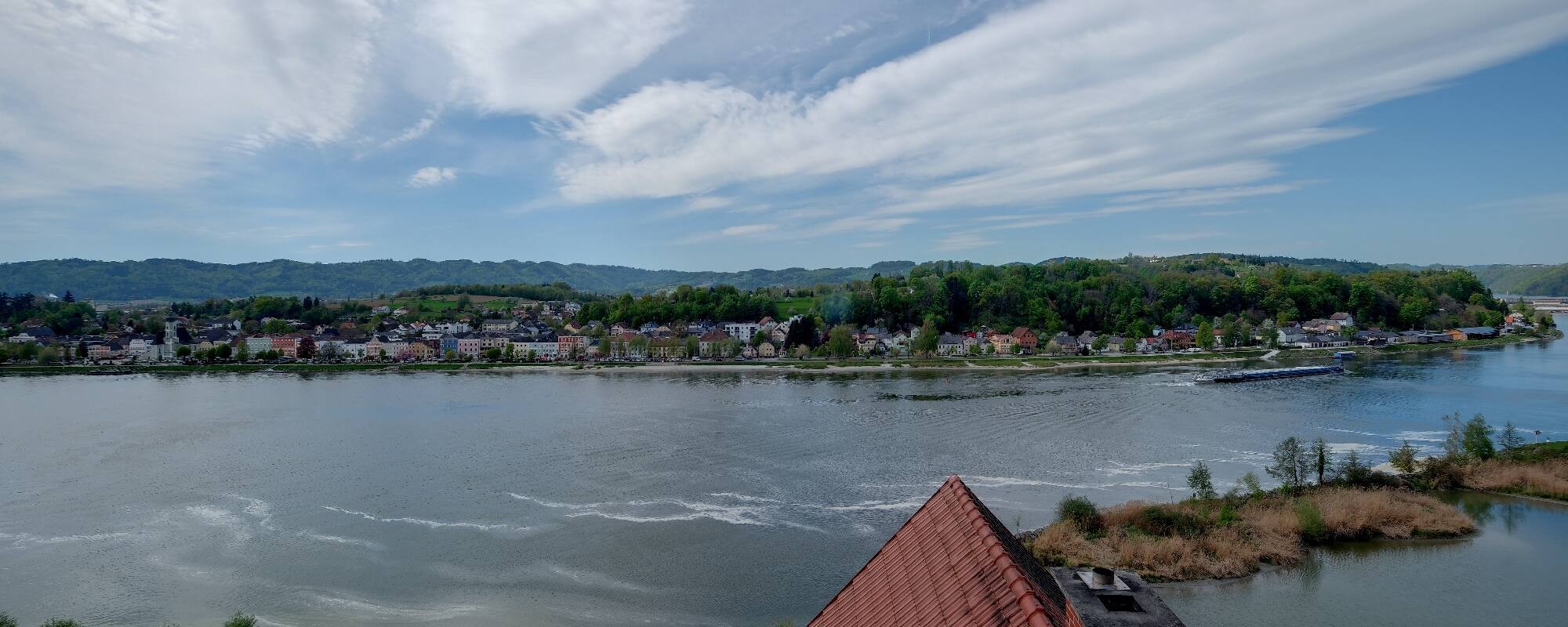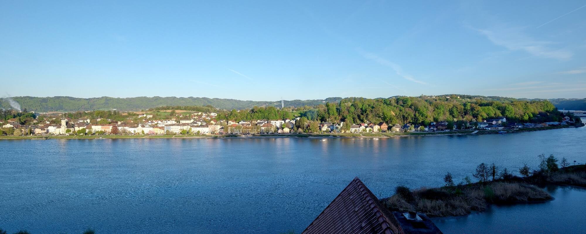 The panorama camera is located at the Hotel-Restaurant Faustschlössl near Feldkirchen and looks over the Danube to Aschach.
