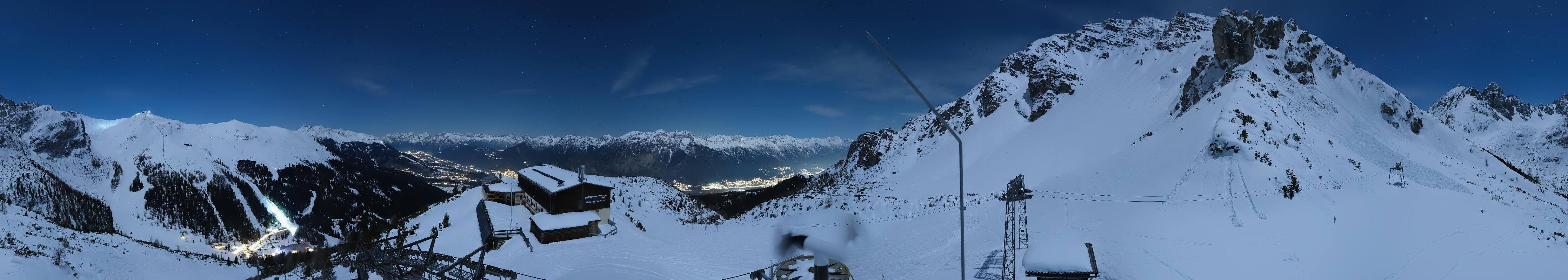 The webcam is located at the top station of the Birgitzköpfl chairlift next to the Birgitzköpflhaus in the ski resort Axamer Lizum not far from Innsbruck. You can also see the Götzner Grube T-bar lift.