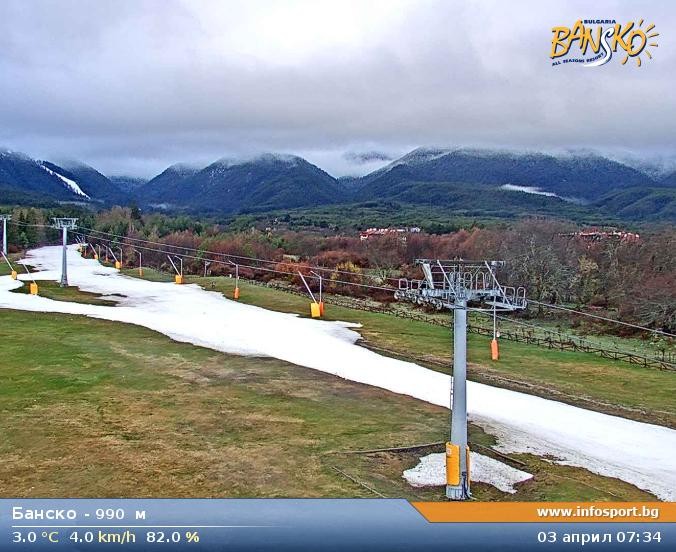 Archived webcam image showing Bansko Base Station on 3 Apr 2026 at 07:17 07:00