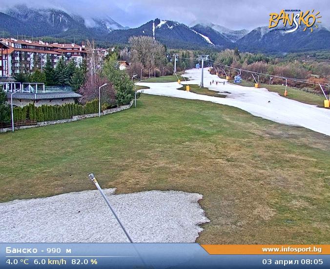 Archived webcam image showing Bansko Base Station on 3 Apr 2026 at 08:17 08:00