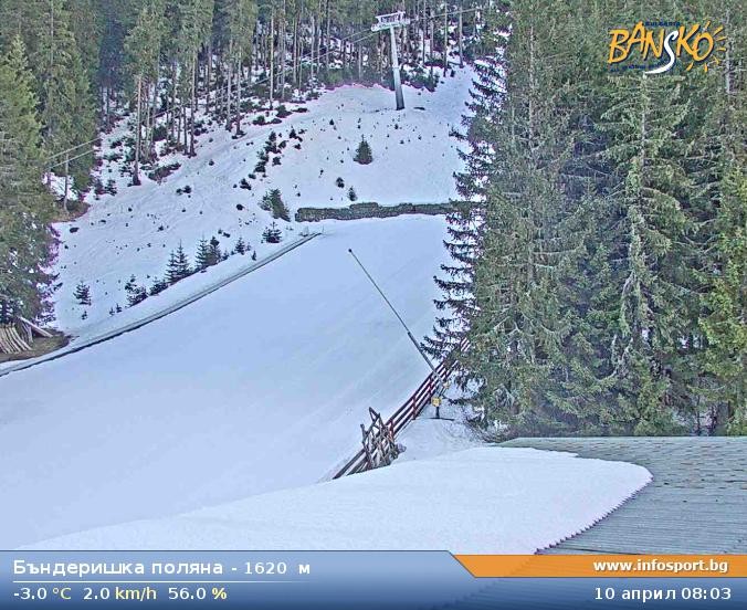 Archived webcam image showing Bansko Ski Resort: Bunderishka polyana on 10 Apr 2026 at 08:38 08:00
