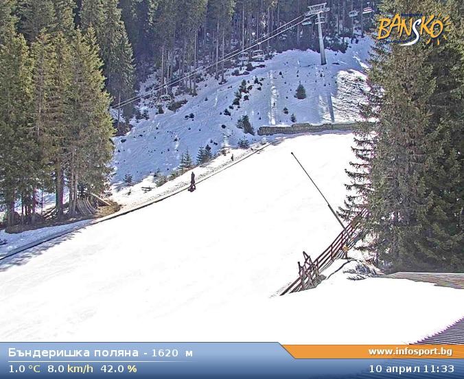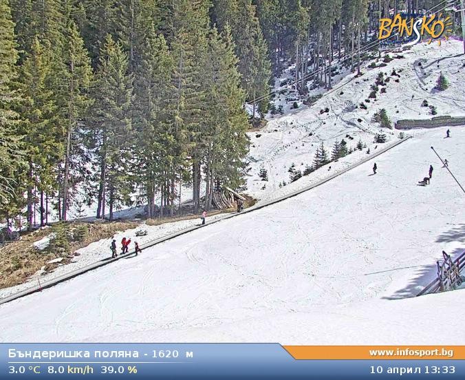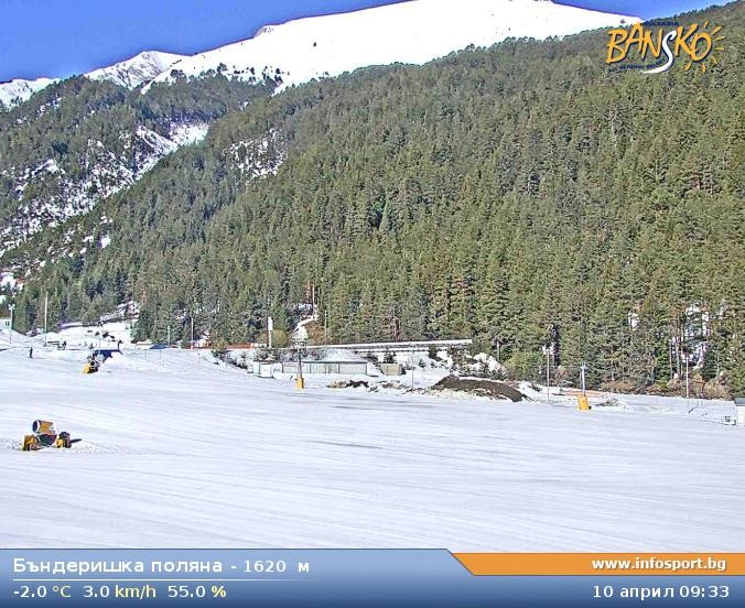 Archived webcam image showing Bansko Ski Resort: Bunderishka polyana on 10 Apr 2026 at 10:38 10:00