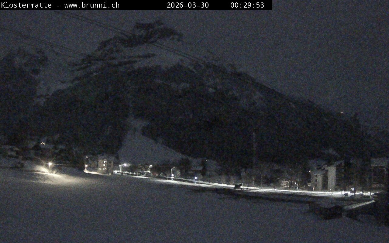 Archived webcam image showing Base station of the Brunni cable car on 30 Mar 2026 at 00:14 23:00