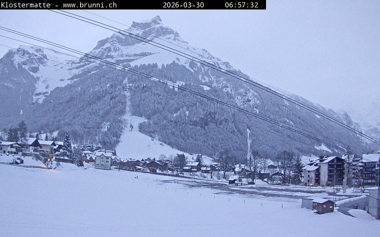 Archived webcam image showing Base station of the Brunni cable car on 30 Mar 2026 at 07:14 06:00