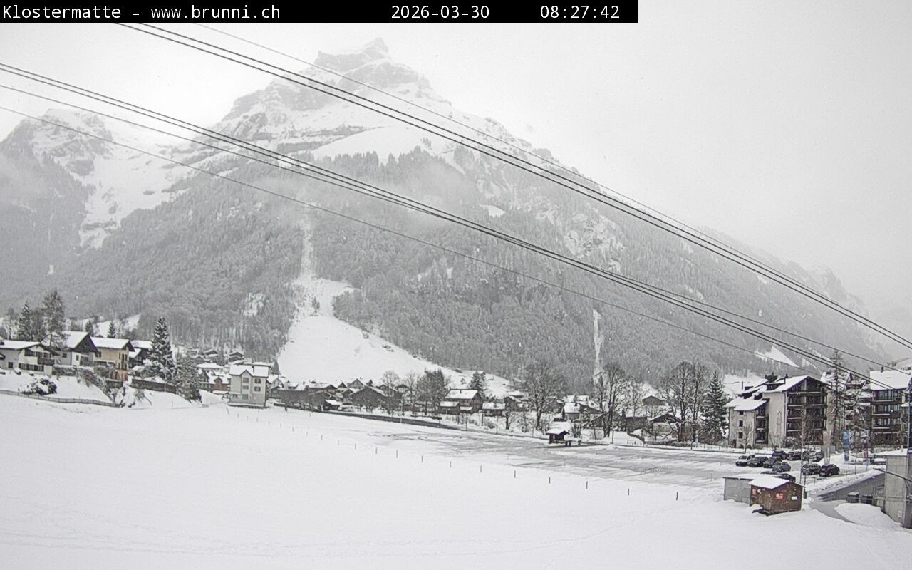 Archived webcam image showing Base station of the Brunni cable car on 30 Mar 2026 at 08:14 07:00