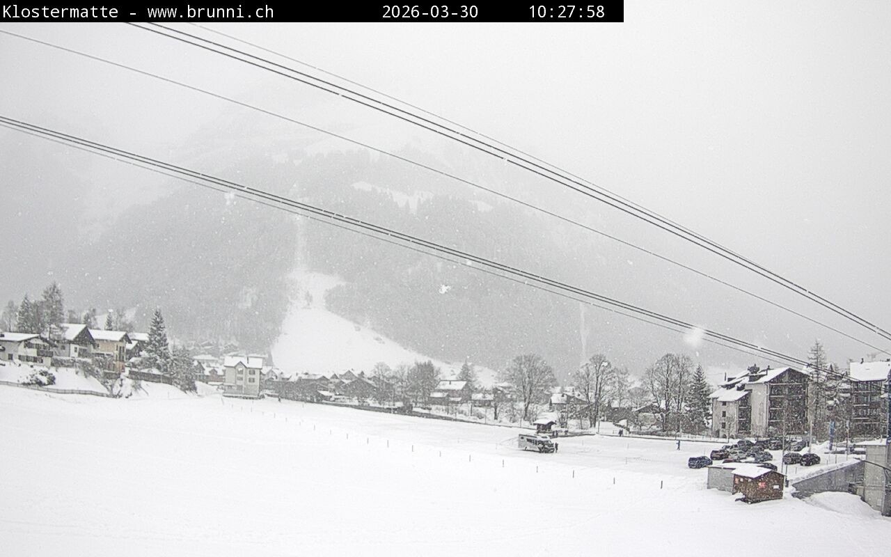 Archived webcam image showing Base station of the Brunni cable car on 30 Mar 2026 at 10:14 09:00