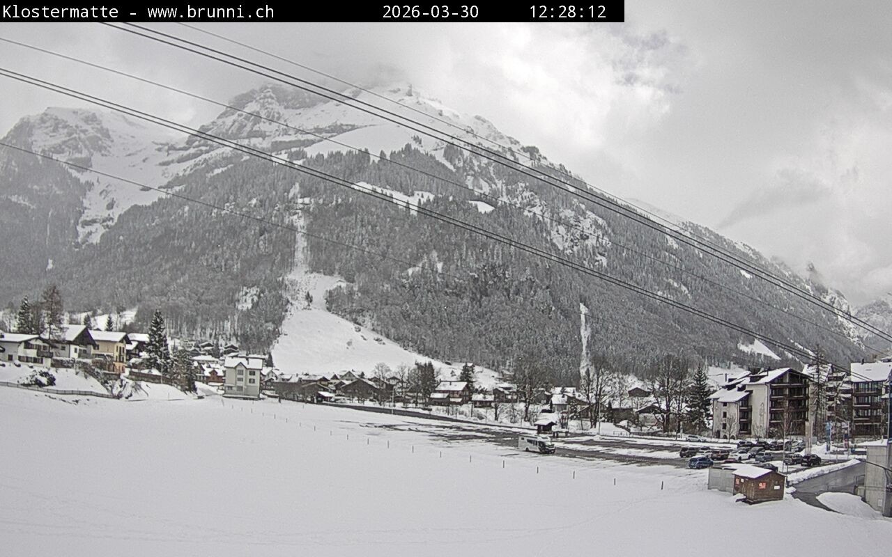 Archived webcam image showing Base station of the Brunni cable car on 30 Mar 2026 at 12:14 Latest