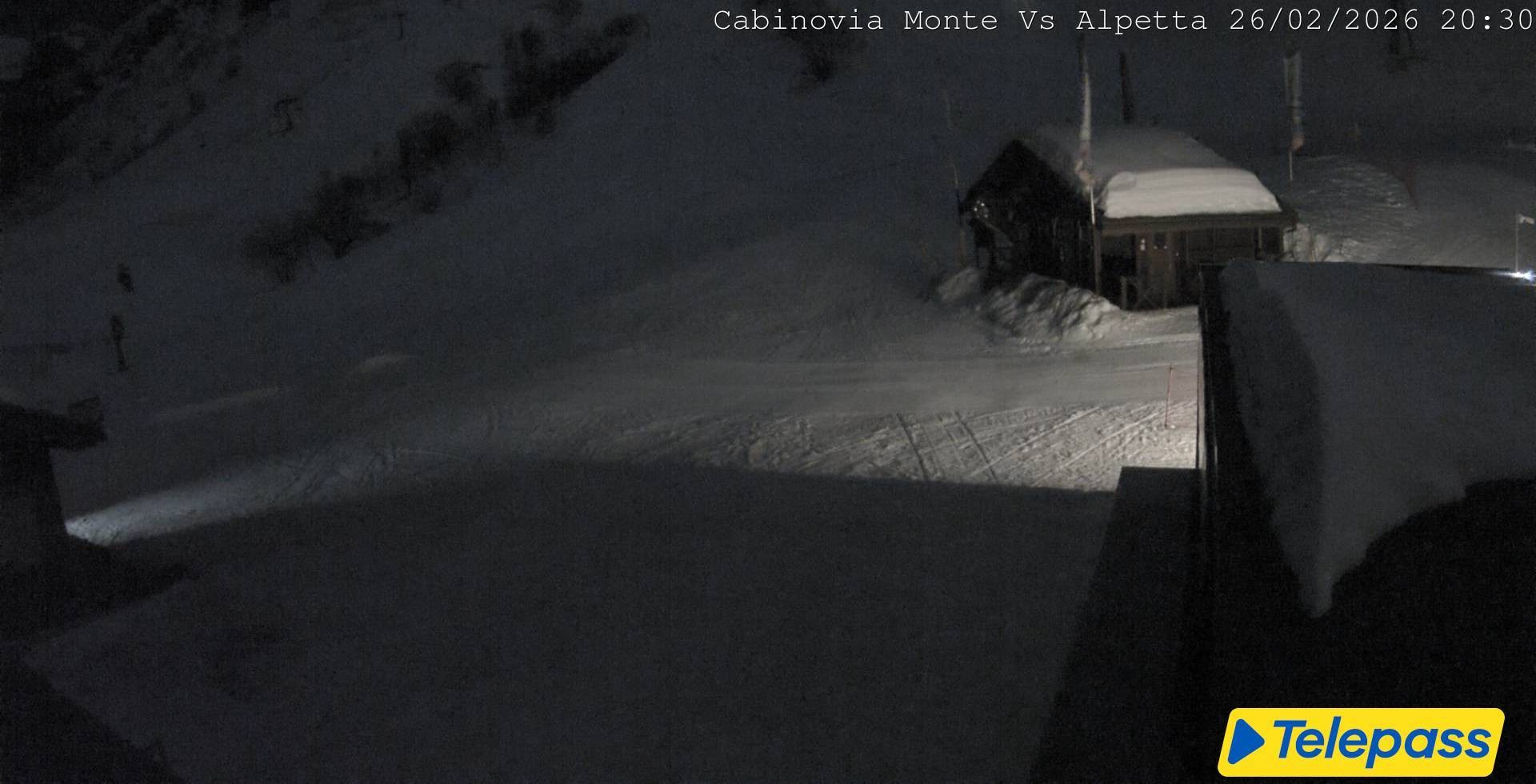 Archived webcam image showing Base station of the Cabainaira skilift on 26 Feb 2026 at 20:44 Latest