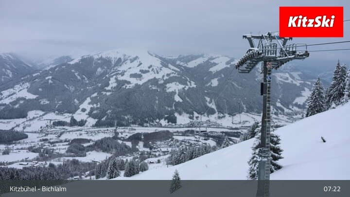 This webcam at Bichlalm chair's top station in Kitzbühel shows a wonderfol view over Kitzbühel and the Tyrolean Alps. Furthermore you can see the mountain restaurant BichlAlm.