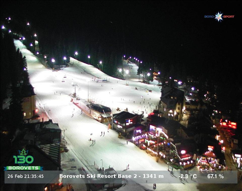 Archived webcam image showing Borovets Base on 26 Feb 2026 at 20:52 Latest
