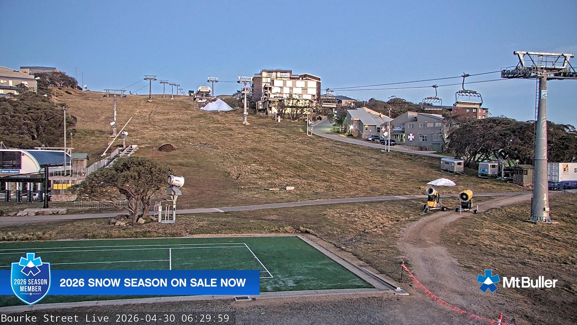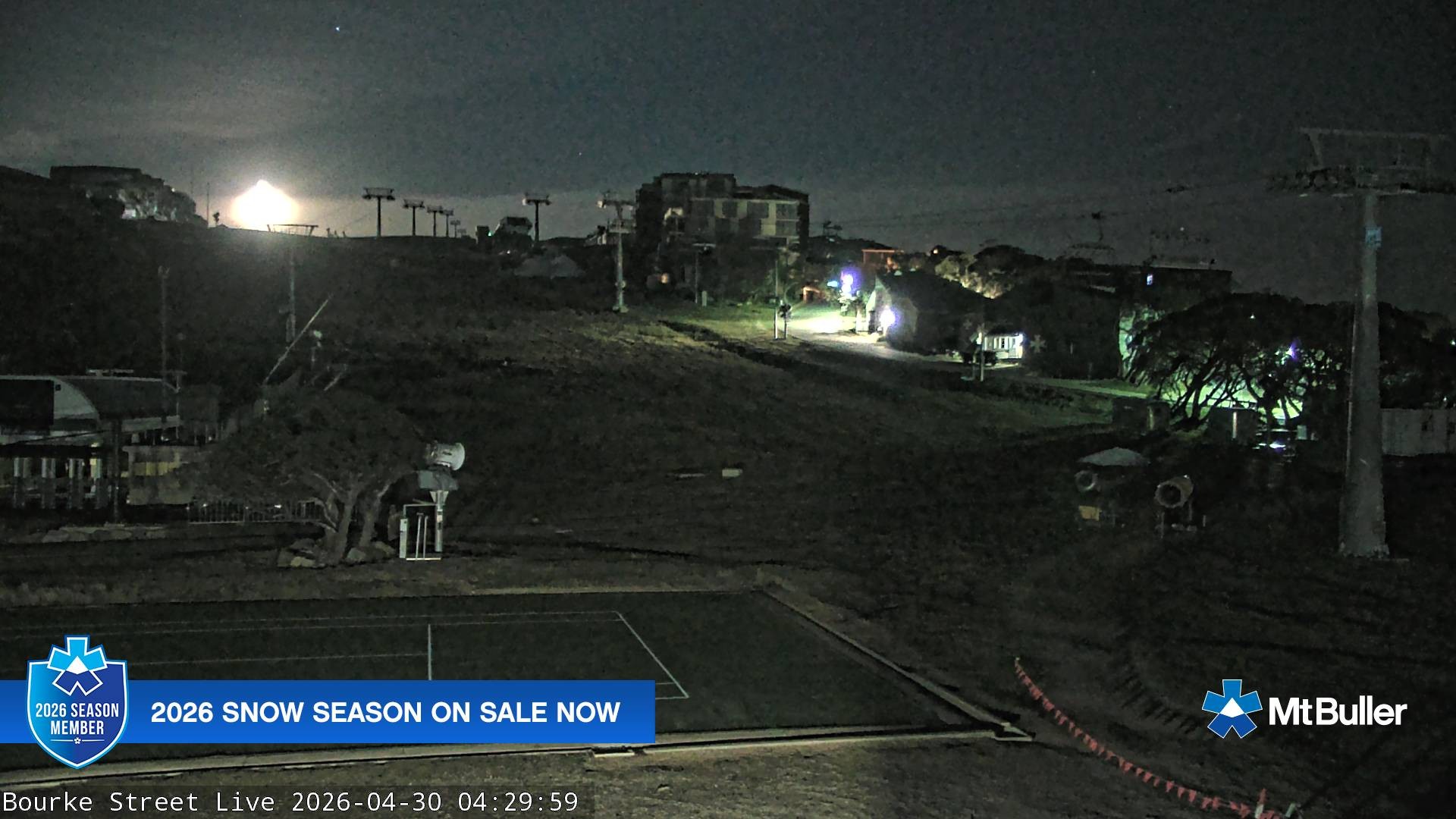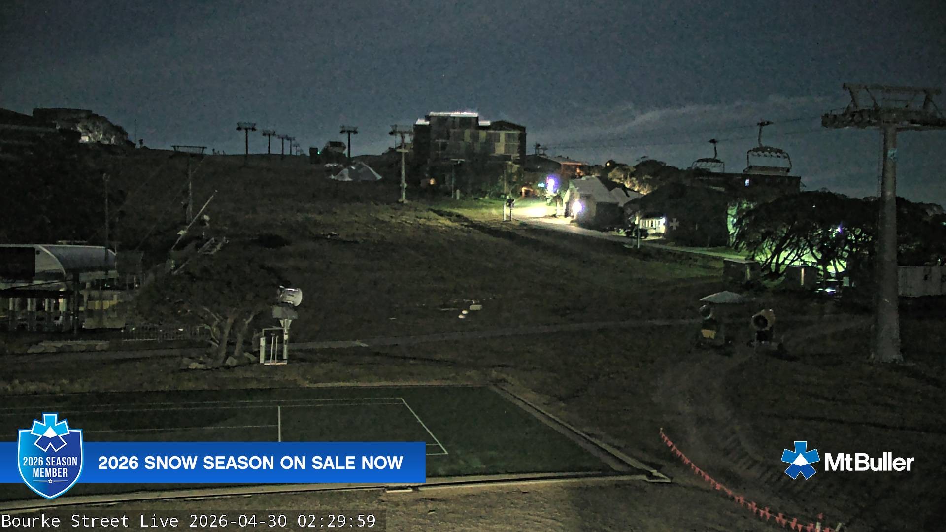 Archived webcam image showing Mt Buller - Bourke Street on 30 Apr 2026 at 02:37 Latest