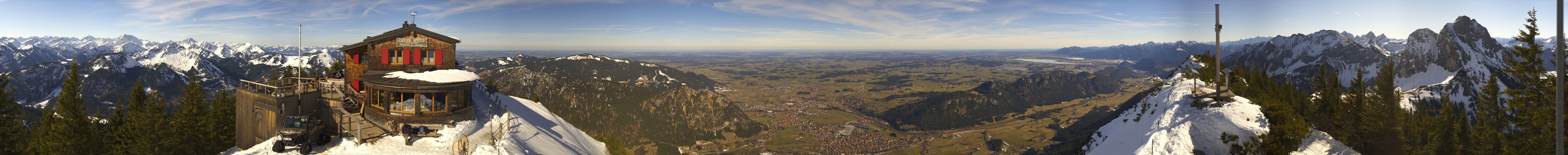 The webcam shows the mountain hut Ostlerhütte at the top of Mt. Breitenberg near Pfronten.