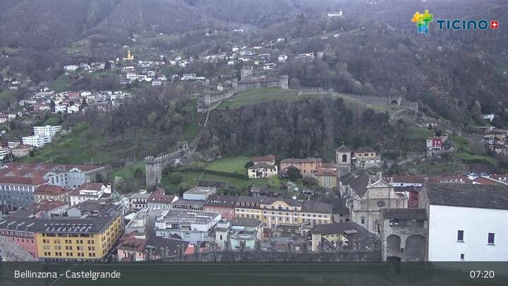 Archived webcam image showing Castelgrande in Bellinzona on 30 Mar 2026 at 07:39 06:00