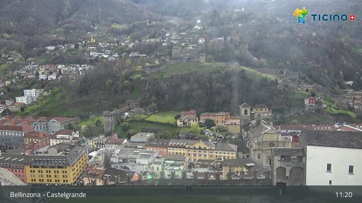 Archived webcam image showing Castelgrande in Bellinzona on 30 Mar 2026 at 11:39 10:00