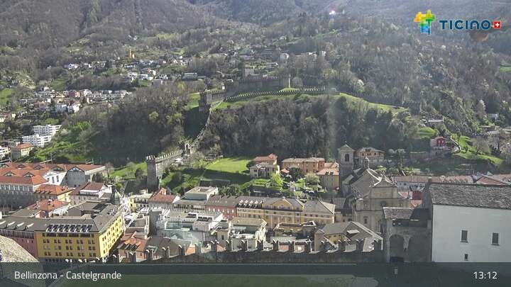 Archived webcam image showing Castelgrande in Bellinzona on 30 Mar 2026 at 13:39 12:00