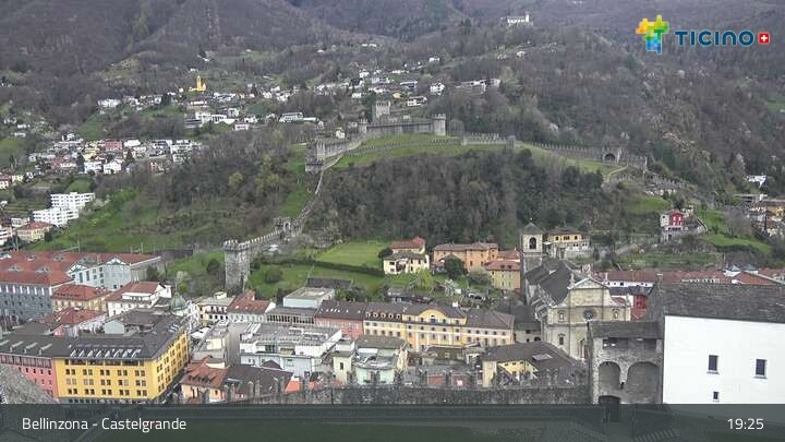 Archived webcam image showing Castelgrande in Bellinzona on 30 Mar 2026 at 19:39 Latest