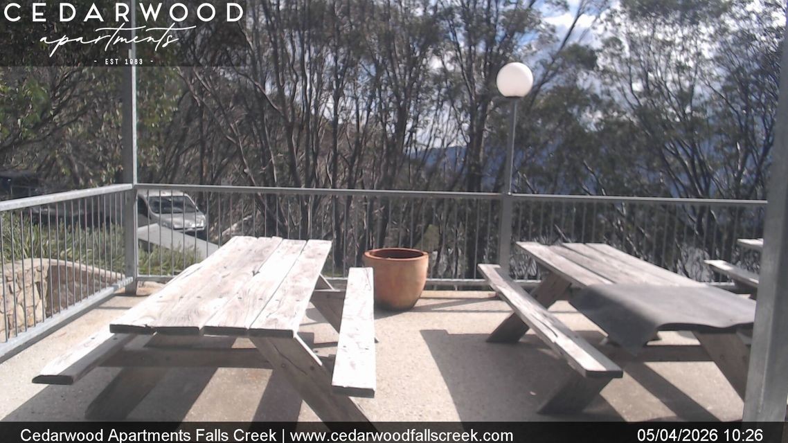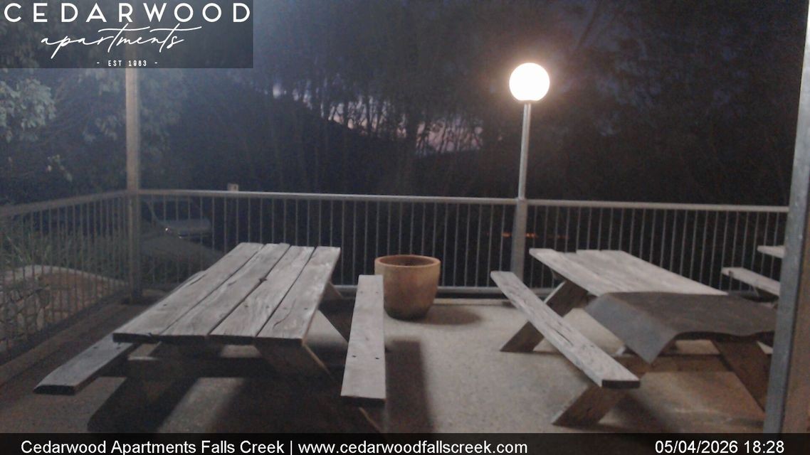 Archived webcam image showing Falls Creek - Cedarwood Apartments on 5 Apr 2026 at 04:22 11:00