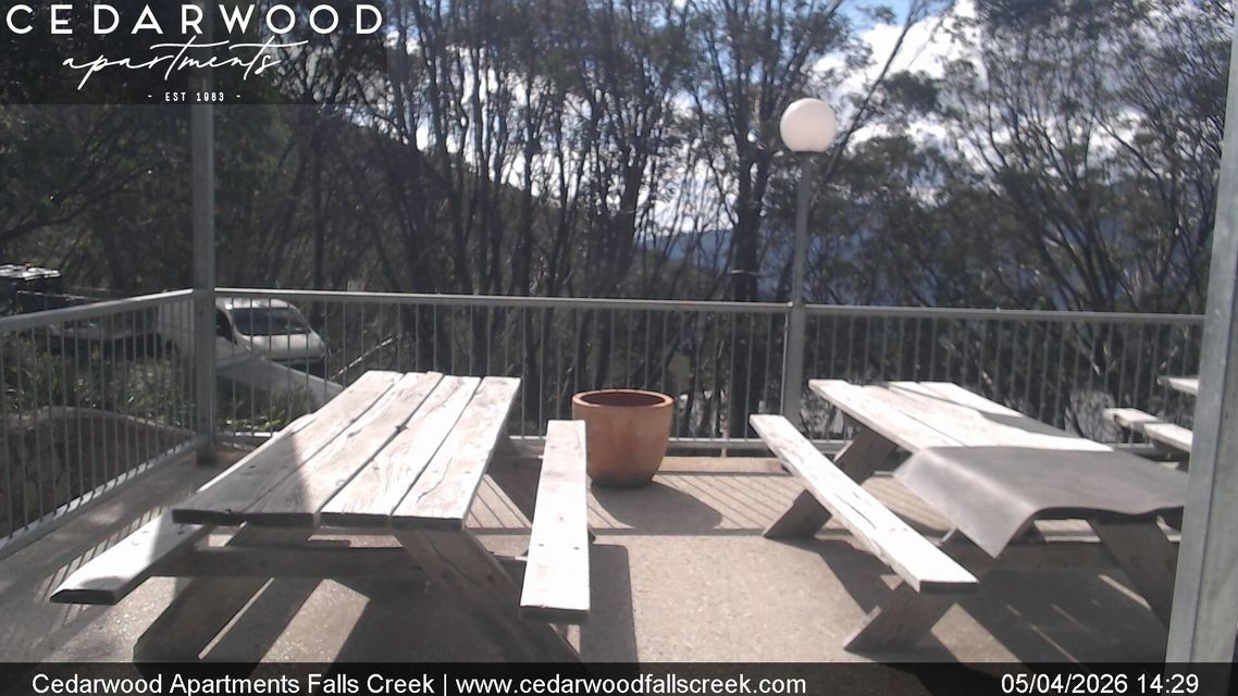 Archived webcam image showing Falls Creek - Cedarwood Apartments on 5 Apr 2026 at 12:22 Latest