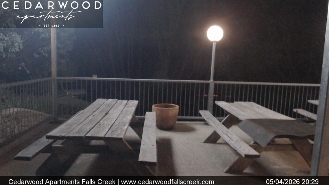Archived webcam image showing Falls Creek - Cedarwood Apartments on 4 Apr 2026 at 20:22 03:00