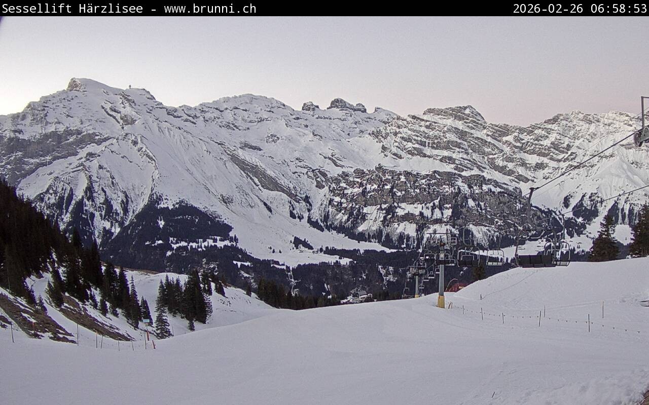 Archiviertes Webcam Bild: Sesselbahn Brunni am 26.02.2026 um 07:21 Uhr 07:00