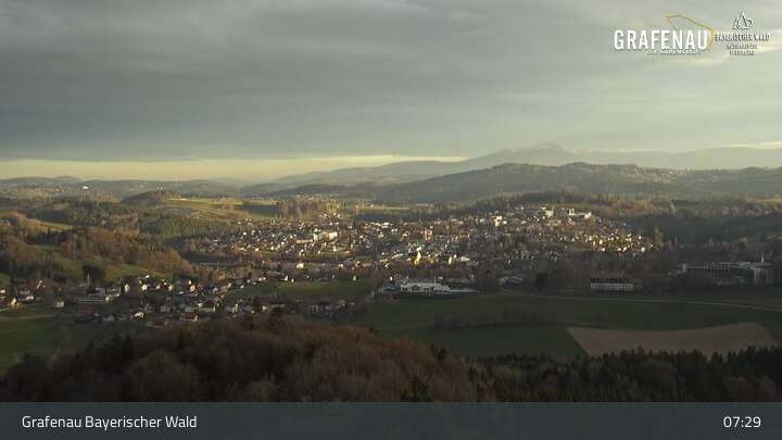 The webcam offers a great view to the north of the climatic health resort Grafenau and the Bavarian Forest National Park.