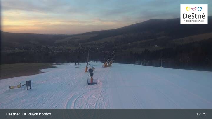 The webcam is located at the ski resort in Deštné v Orlických horách.